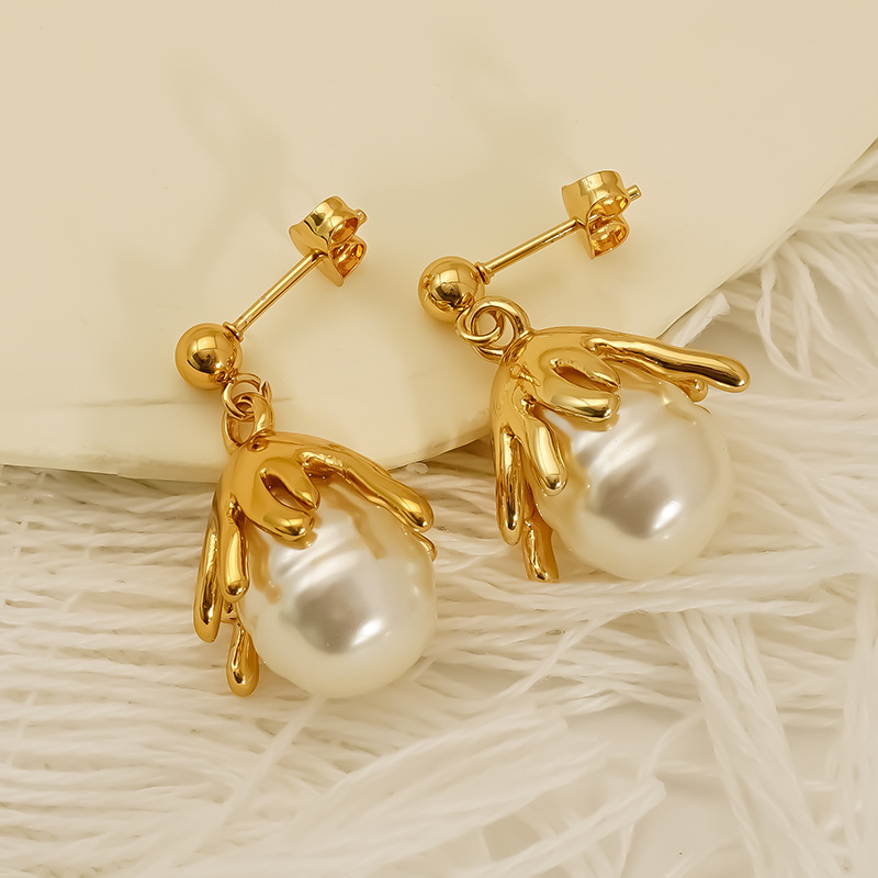 304 Edelstahl Tropfen Ohrring, 18K vergoldet, Modeschmuck & für Frau & hohl, verkauft von Paar