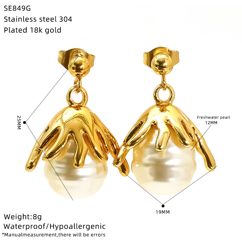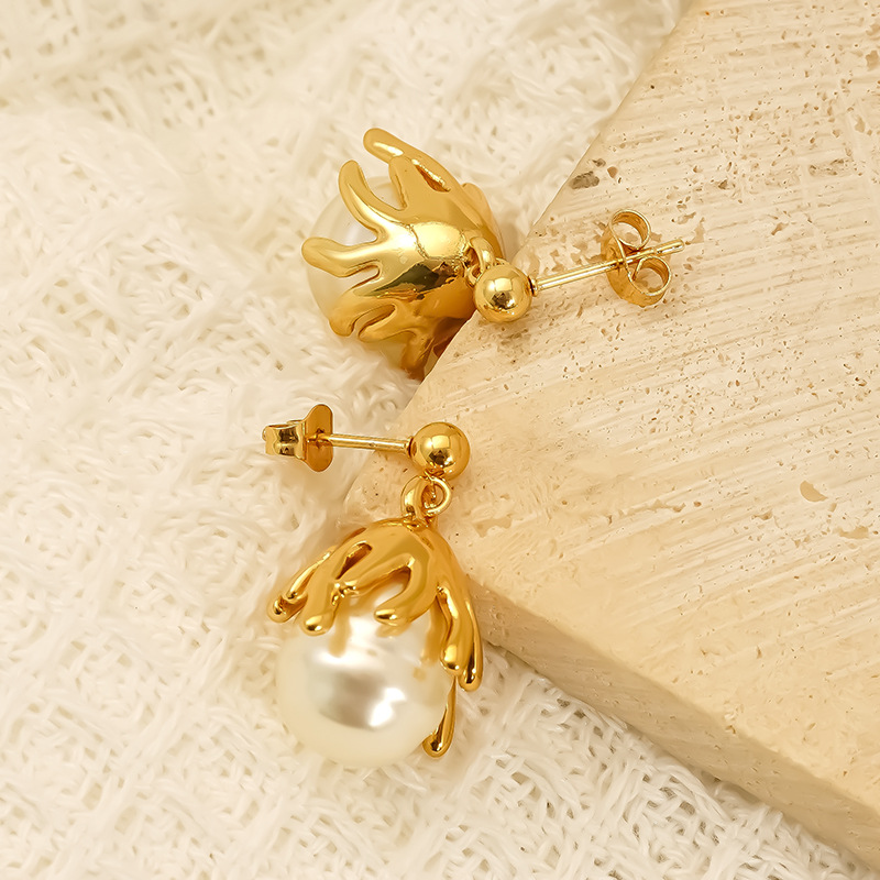 Edelstahl Tropfen Ohrring, 304 Edelstahl, mit Natürliche kultivierte Süßwasserperlen, Blume, 18K vergoldet, Modeschmuck & für Frau, verkauft von Paar