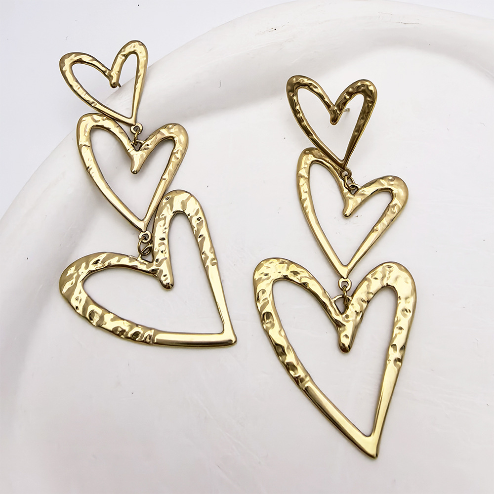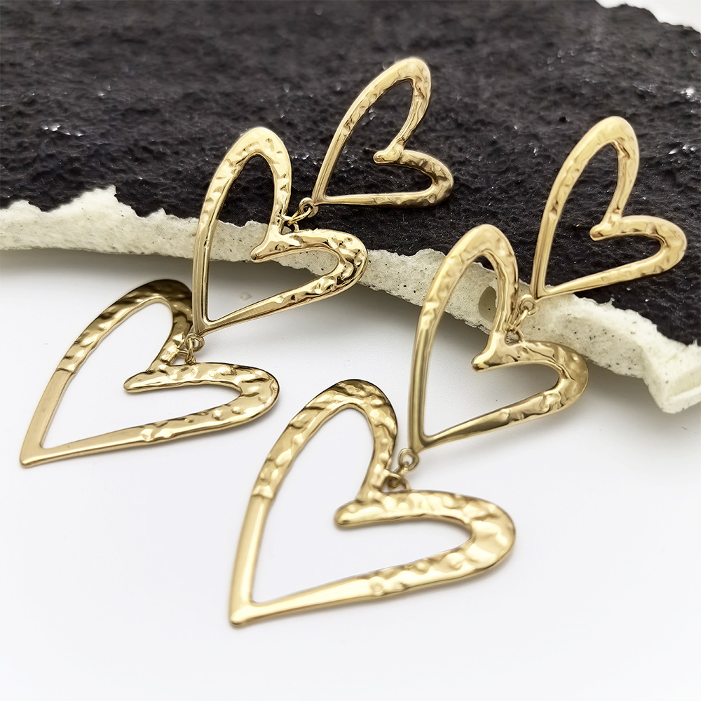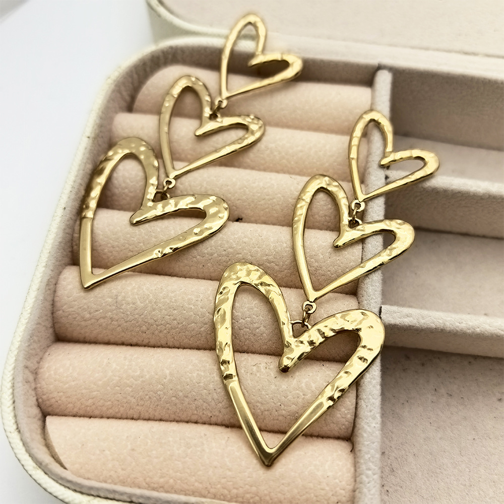 Edelstahl Tropfen Ohrring, 304 Edelstahl, Herz, 18K vergoldet, Modeschmuck & für Frau & hohl, verkauft von Paar