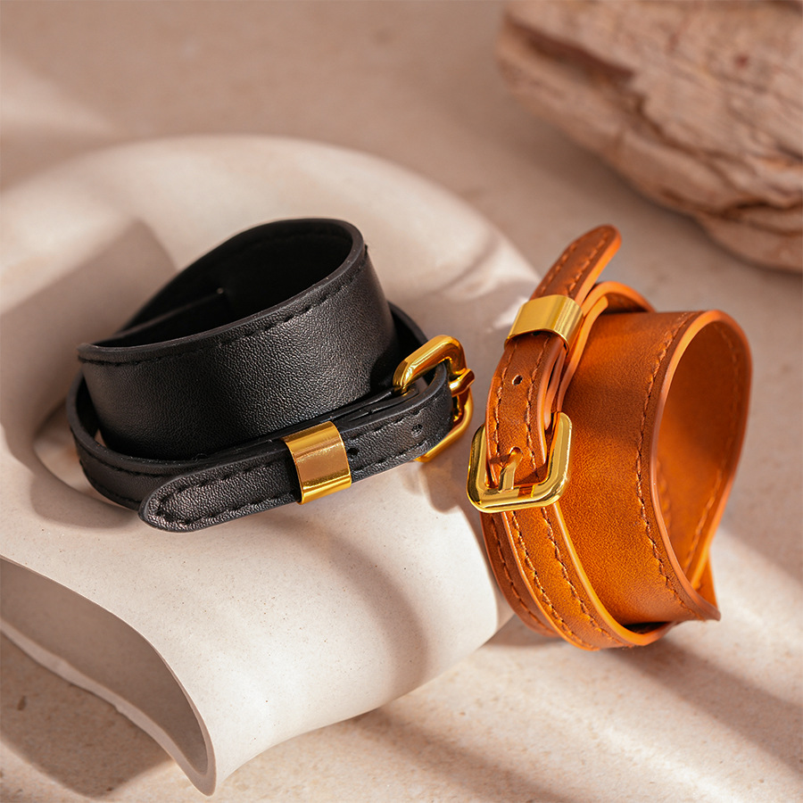 1:Black leather bracelet necklace2:Brown leather bracelet necklace