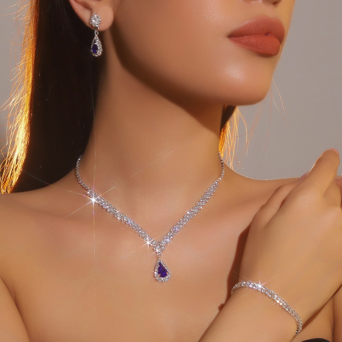 Messing Schmuckset, Armband & Ohrring & Halskette, Modeschmuck & für Frau & mit Strass, keine, verkauft von setzen
