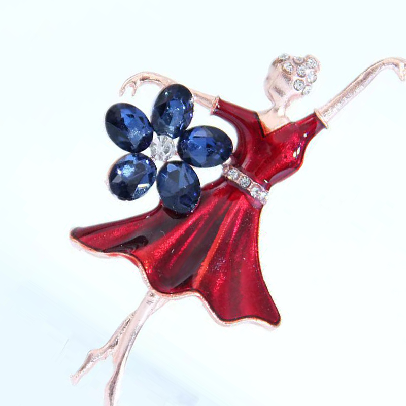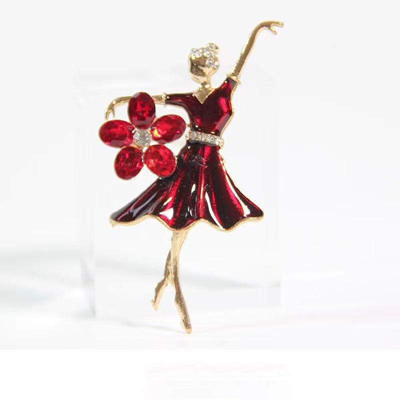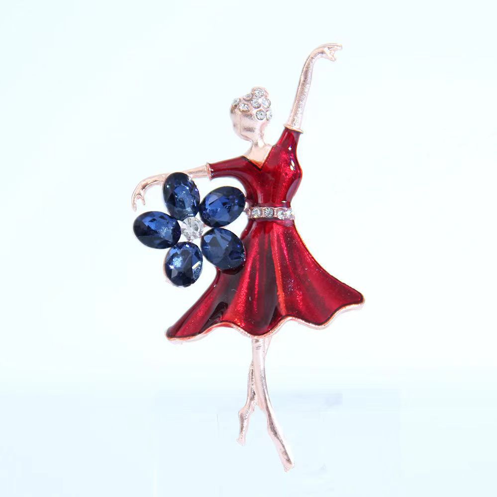 Zinklegierung Broschen, Dancing Girl, goldfarben plattiert, für Frau & Emaille & mit Strass, keine, 40x70mm, verkauft von PC