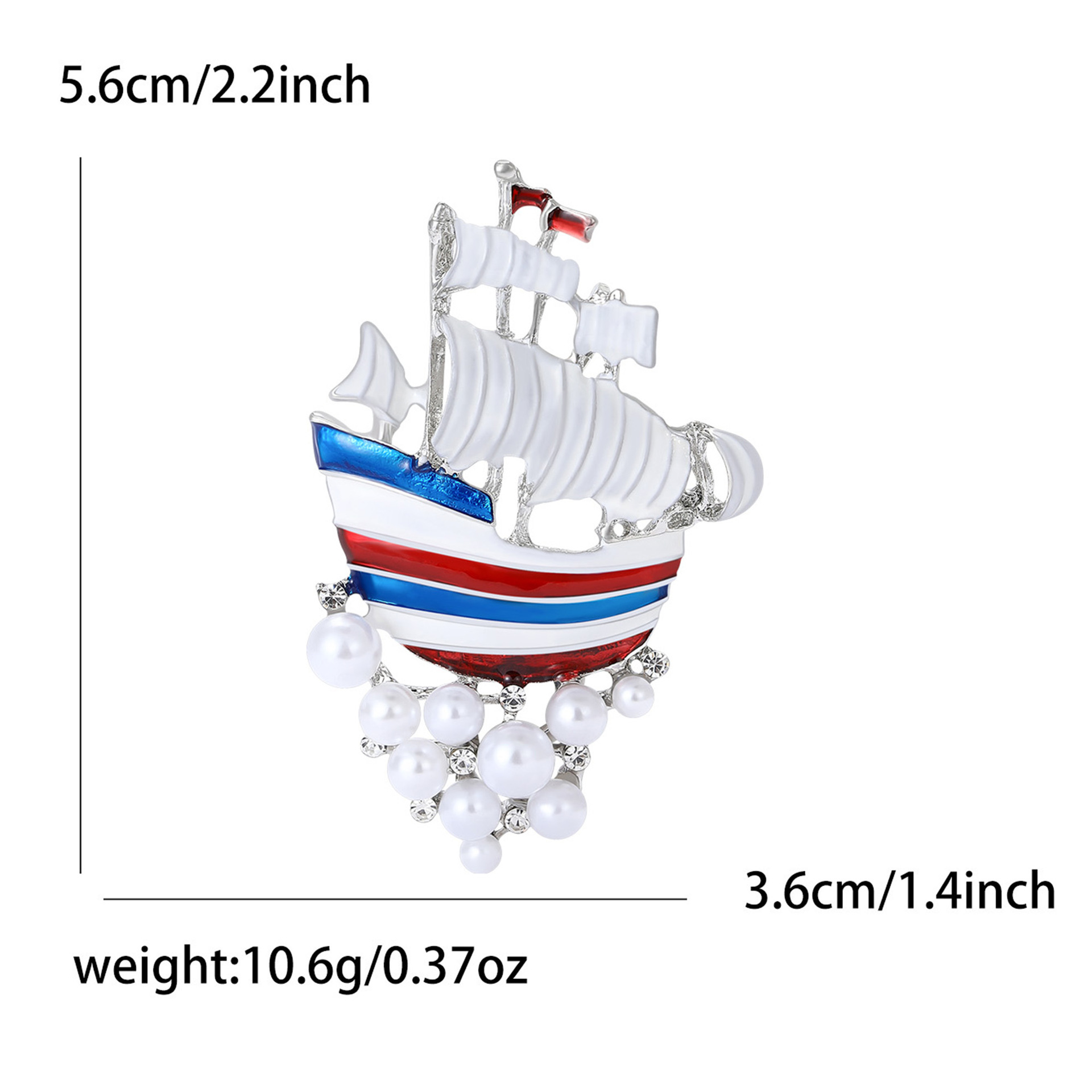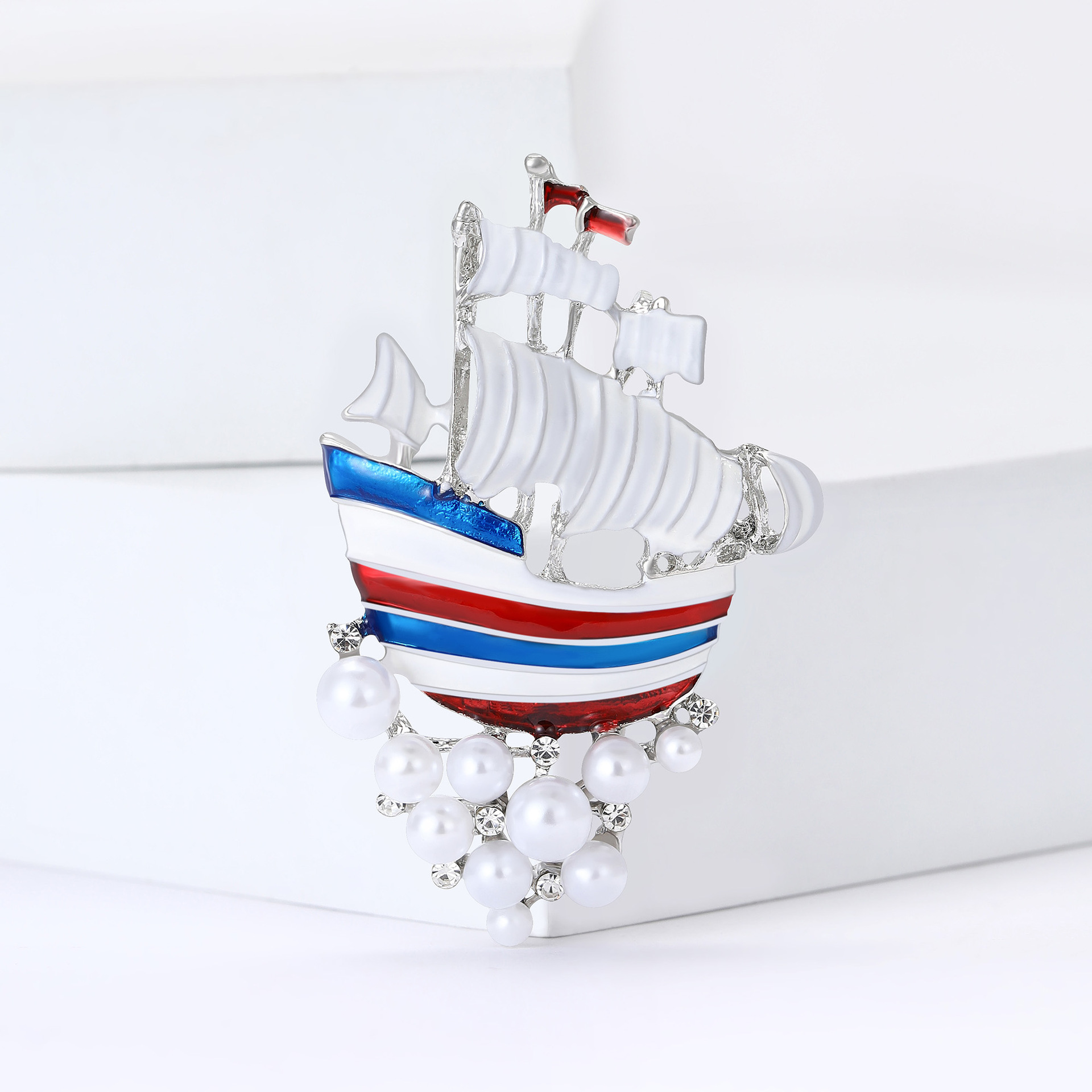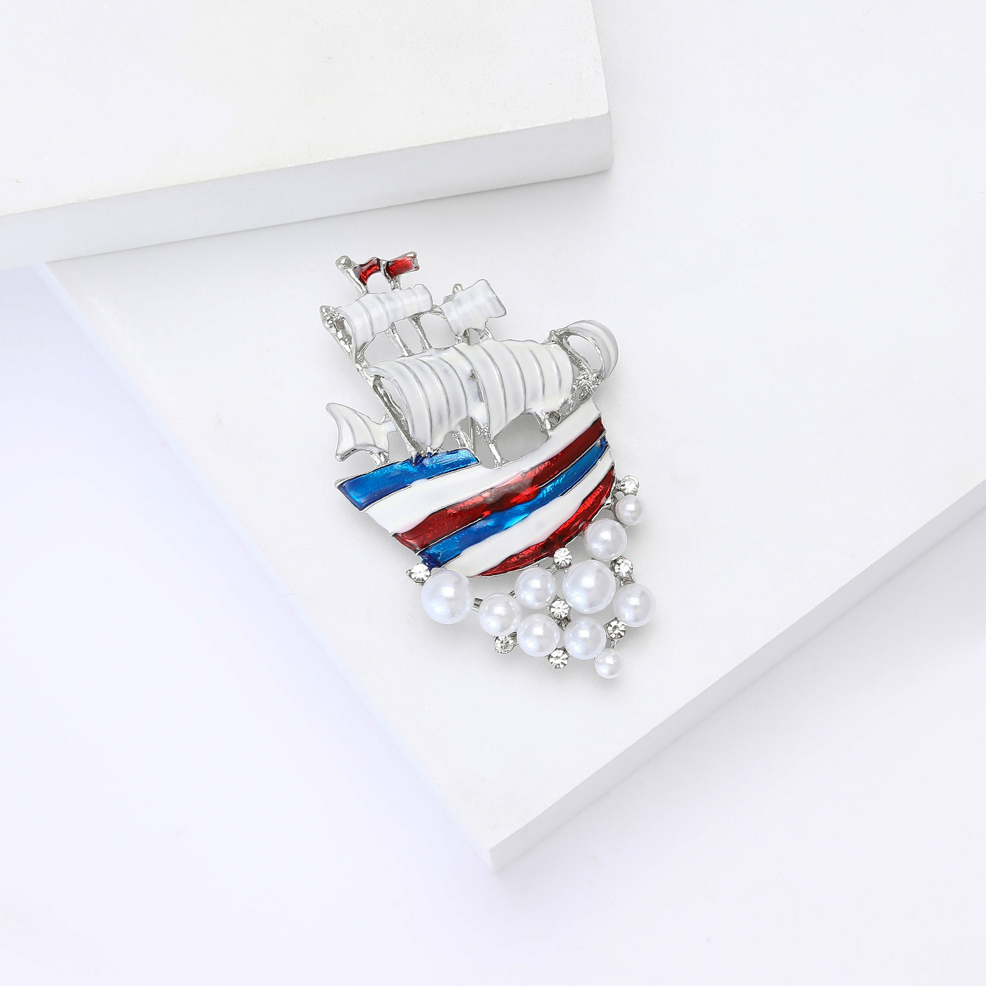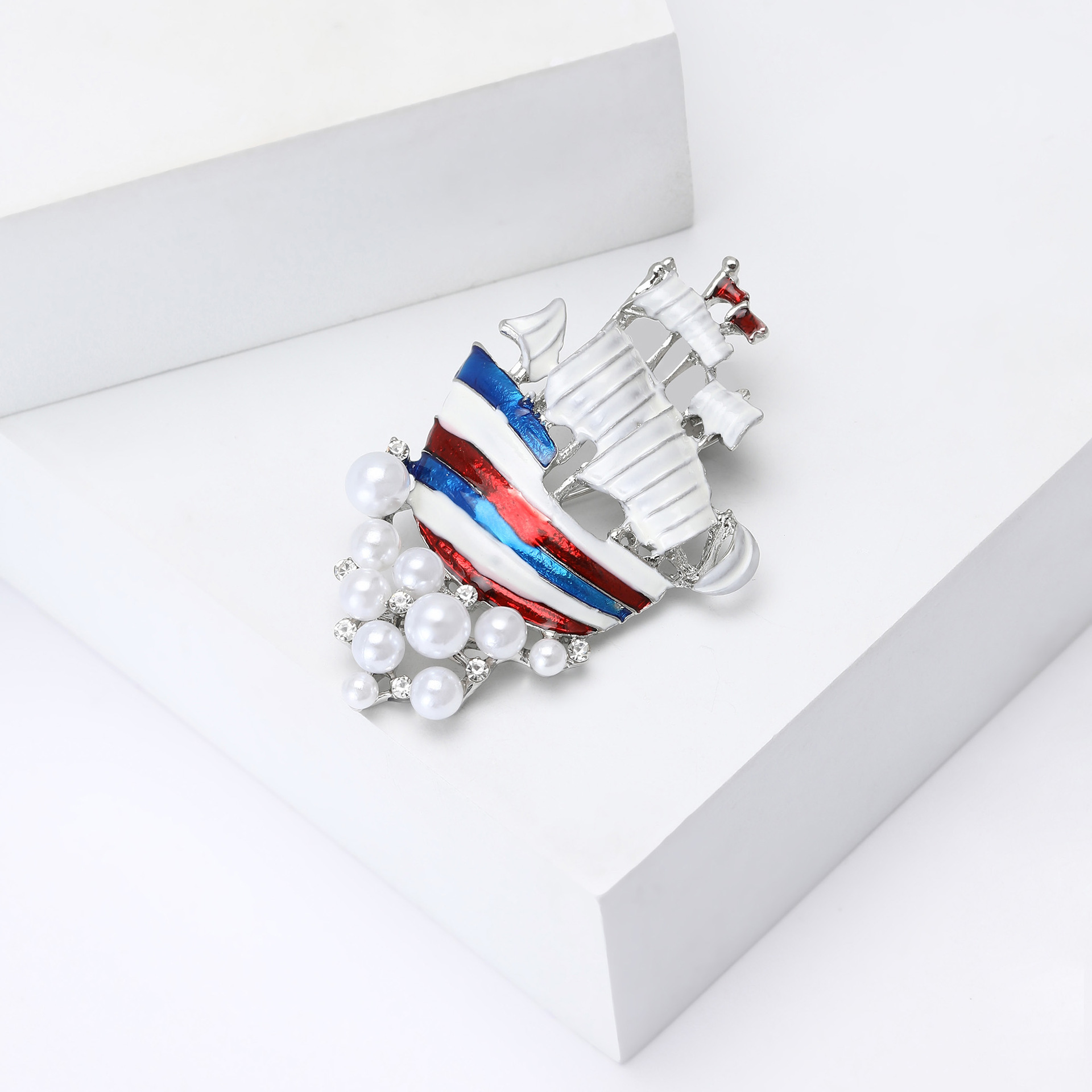 Zinklegierung Broschen, mit Kunststoff Perlen, Schiff, silberfarben plattiert, für Frau & Emaille, gemischte Farben, frei von Nickel, Blei & Kadmium, verkauft von PC