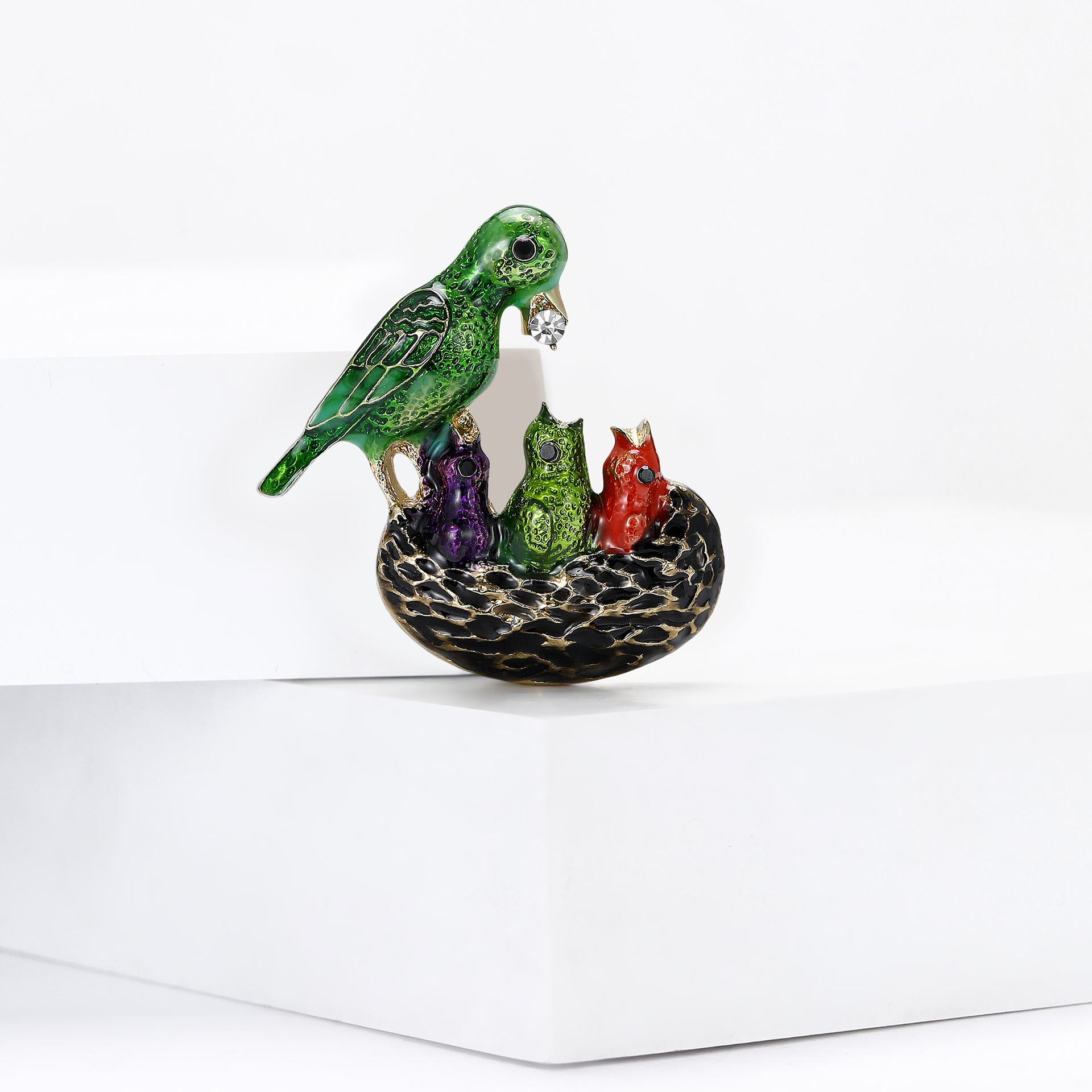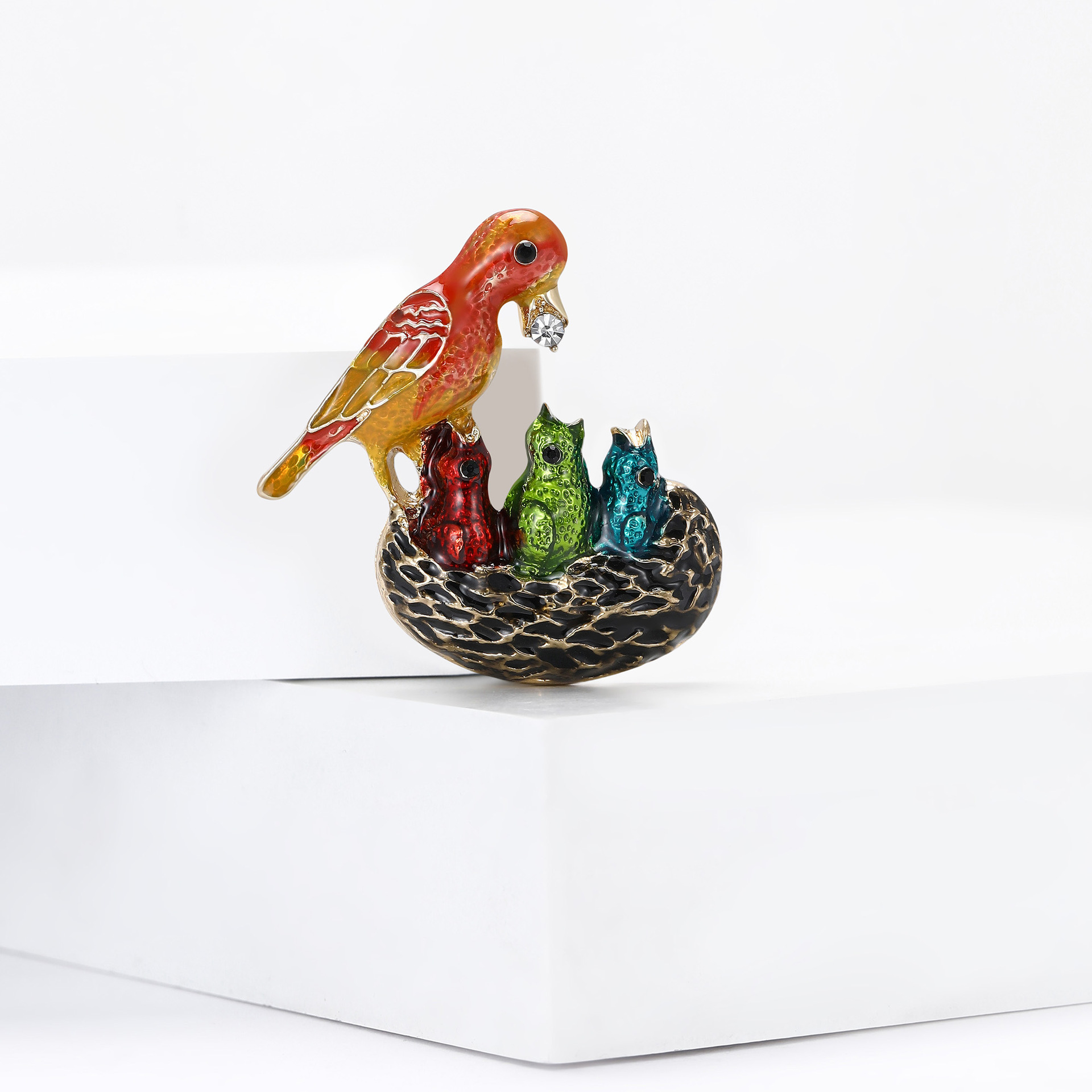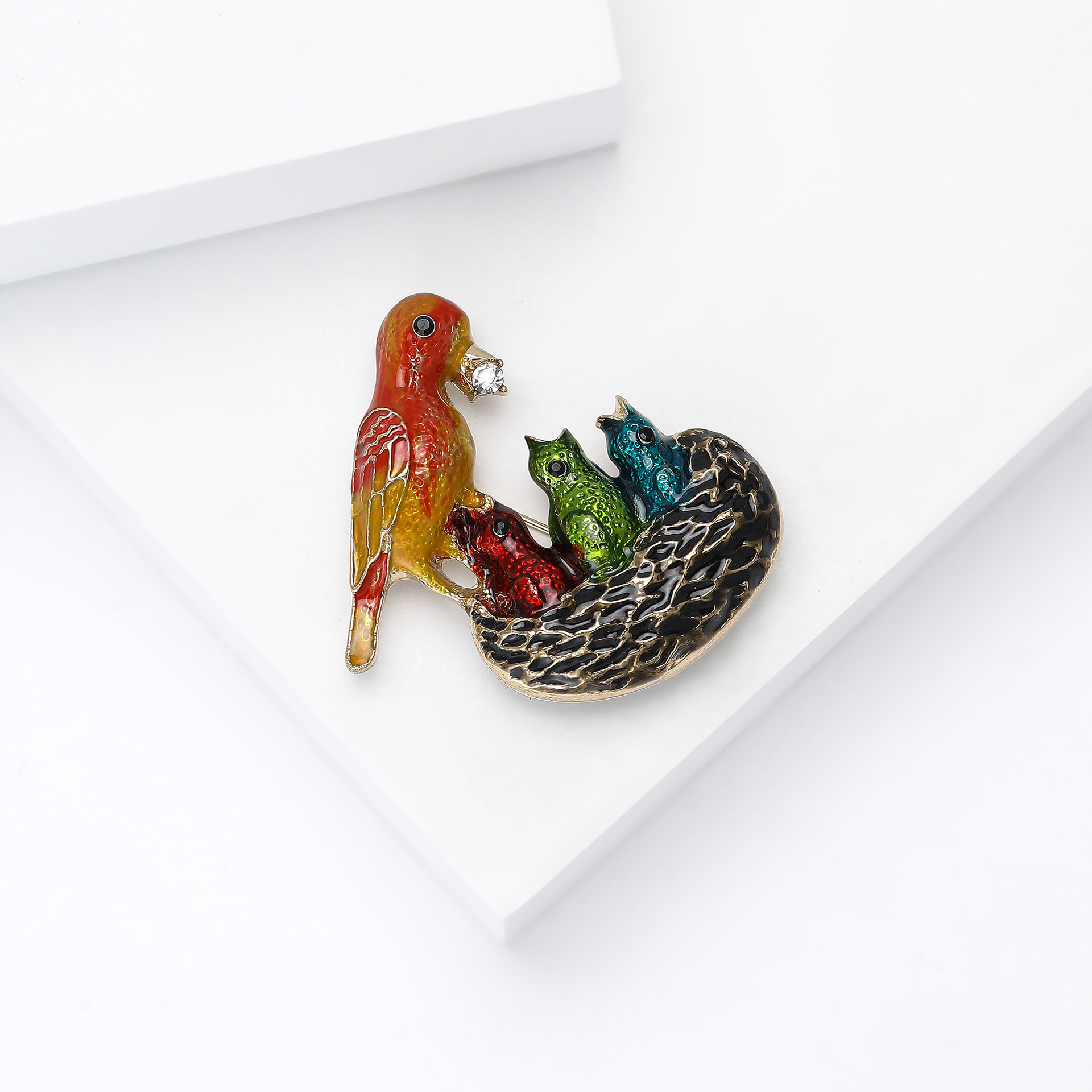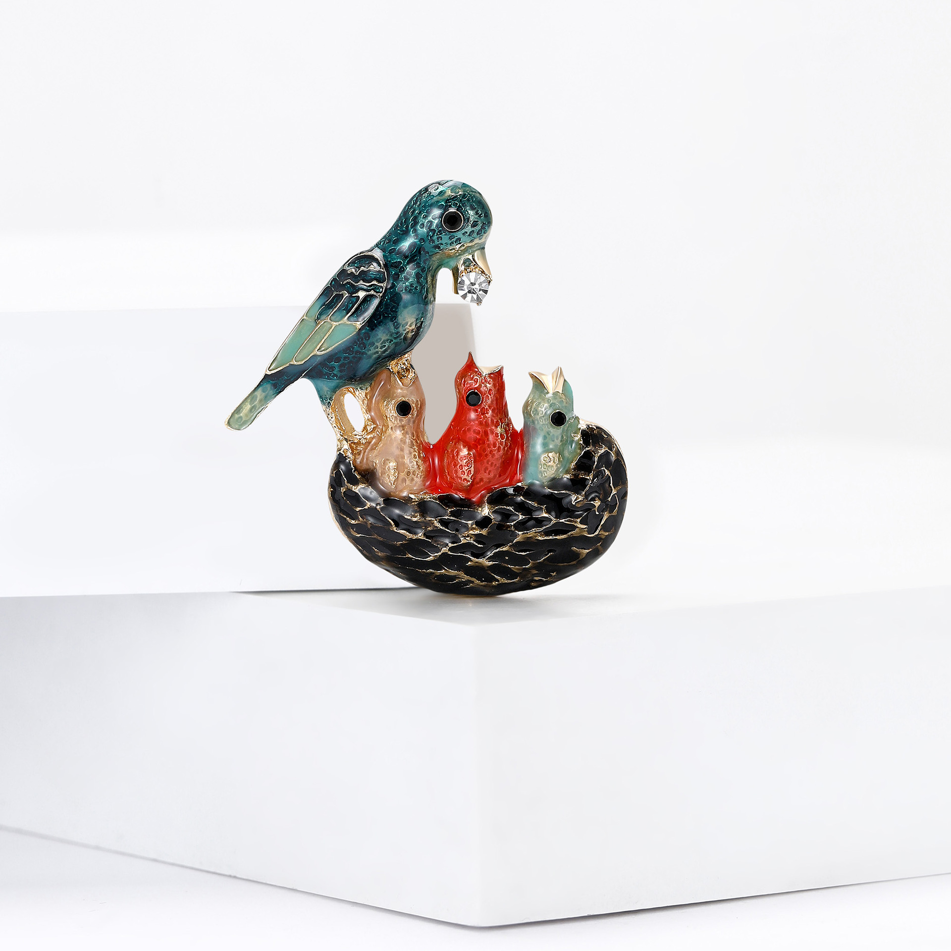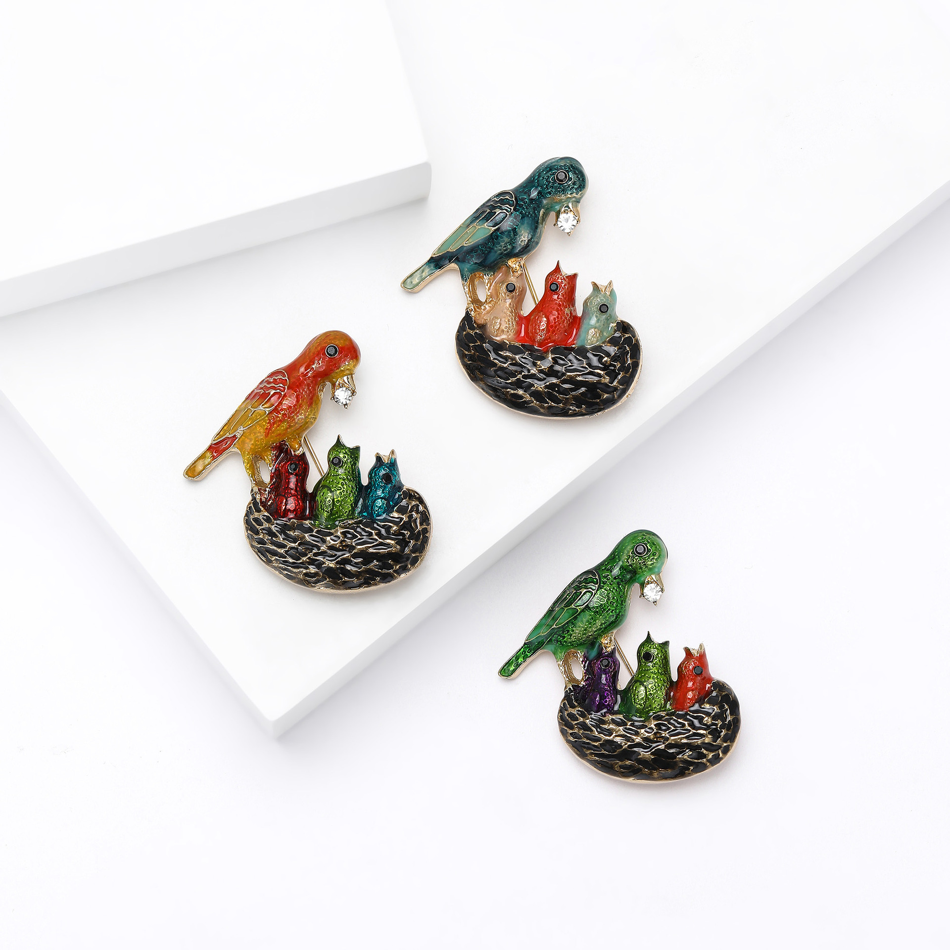 Zinklegierung Broschen, Vogel-Nest, plattiert, für Frau & Emaille & mit Strass, keine, frei von Nickel, Blei & Kadmium, verkauft von PC