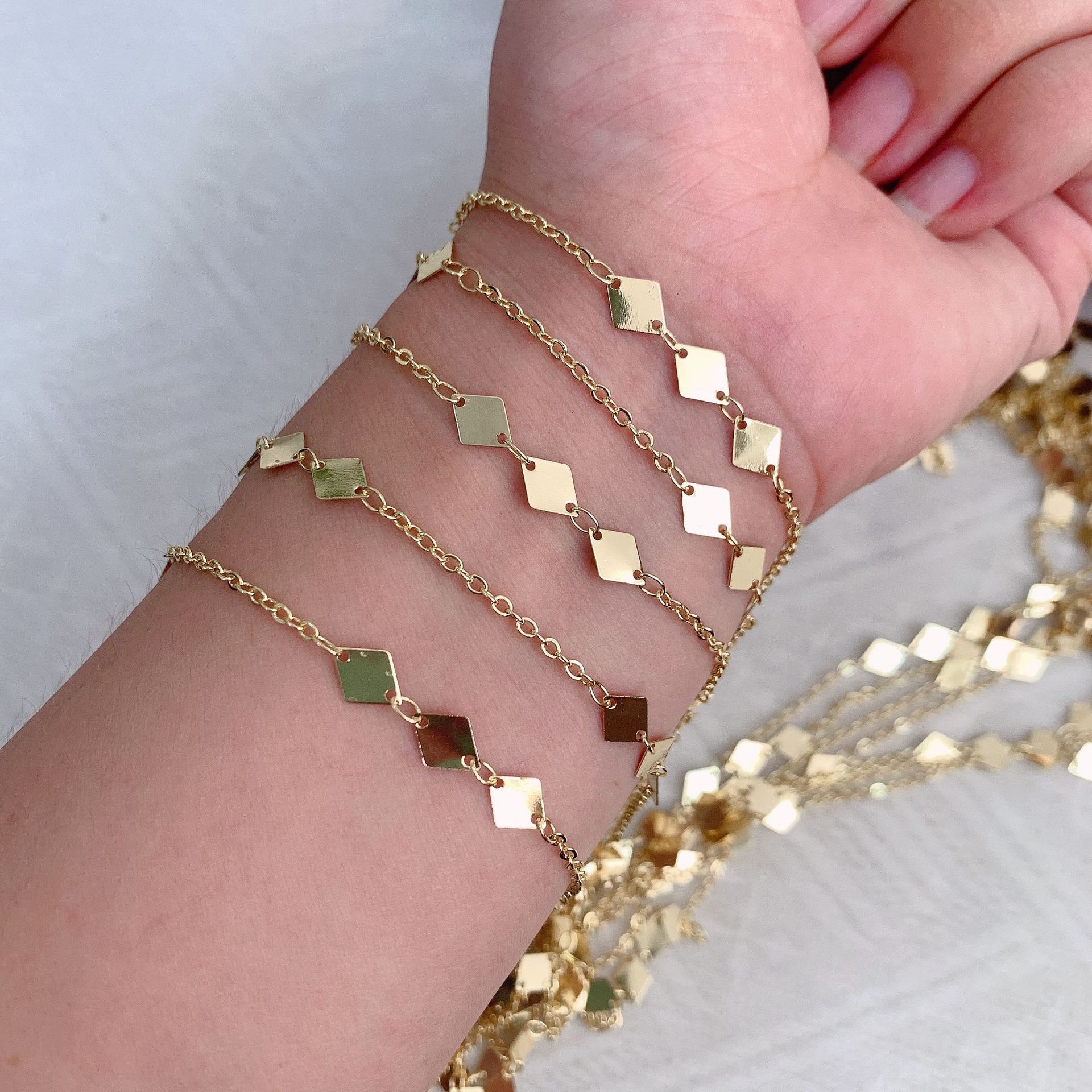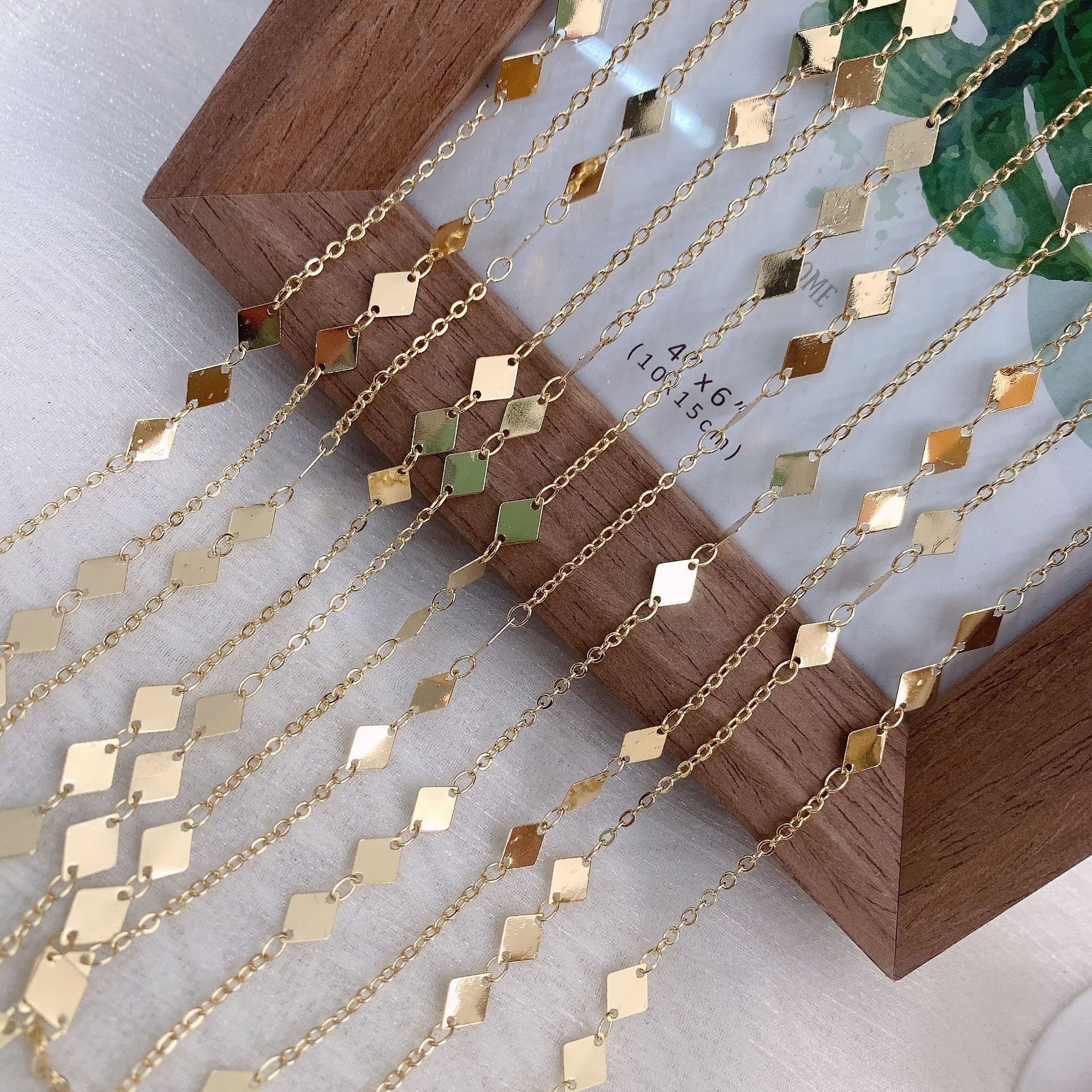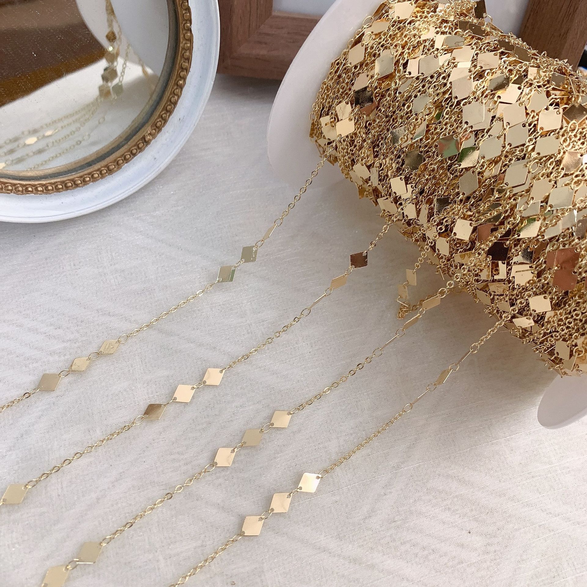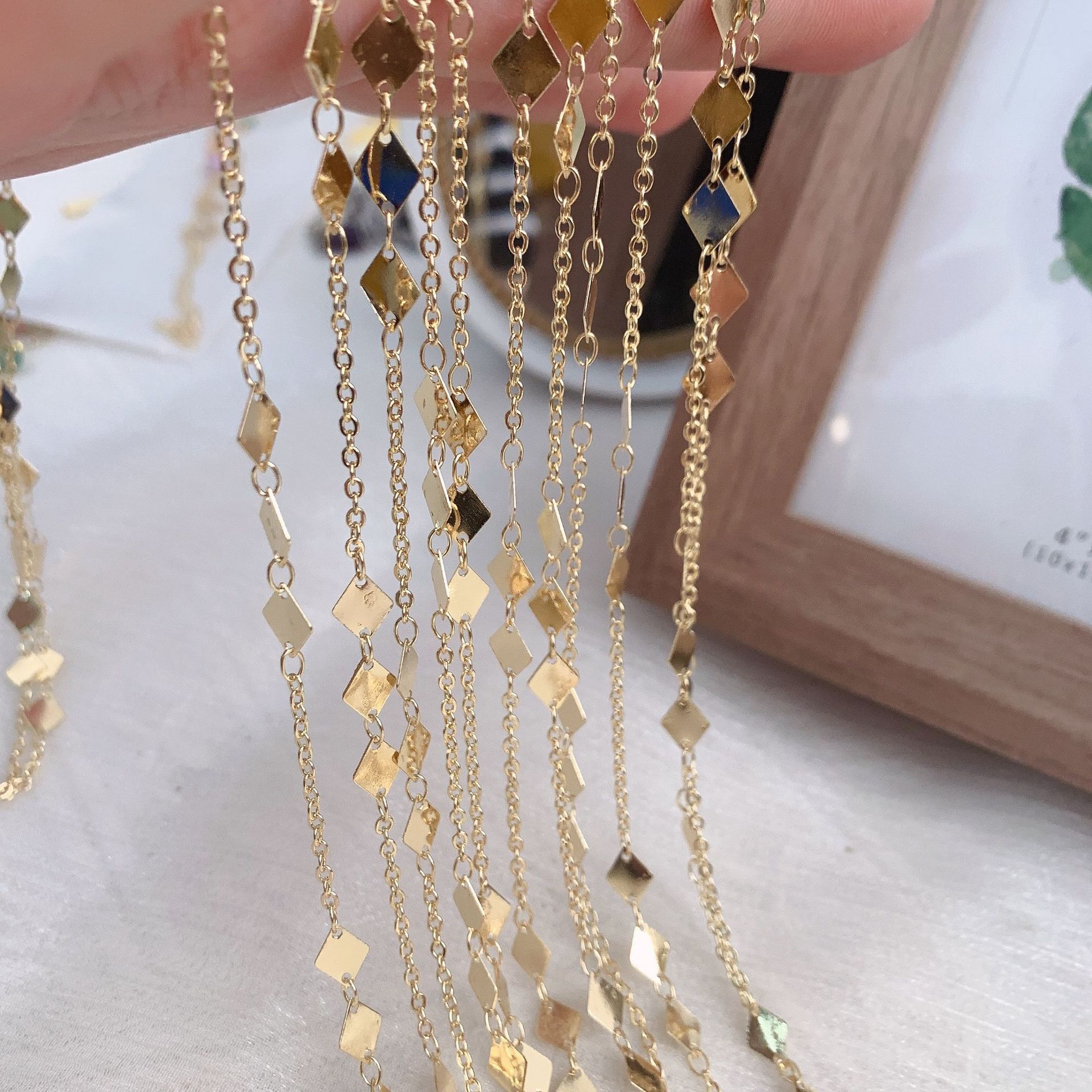 Messingkette Halskette, Messing, Rhombus, goldfarben plattiert, DIY, frei von Nickel, Blei & Kadmium, 10m/Tasche, verkauft von Tasche