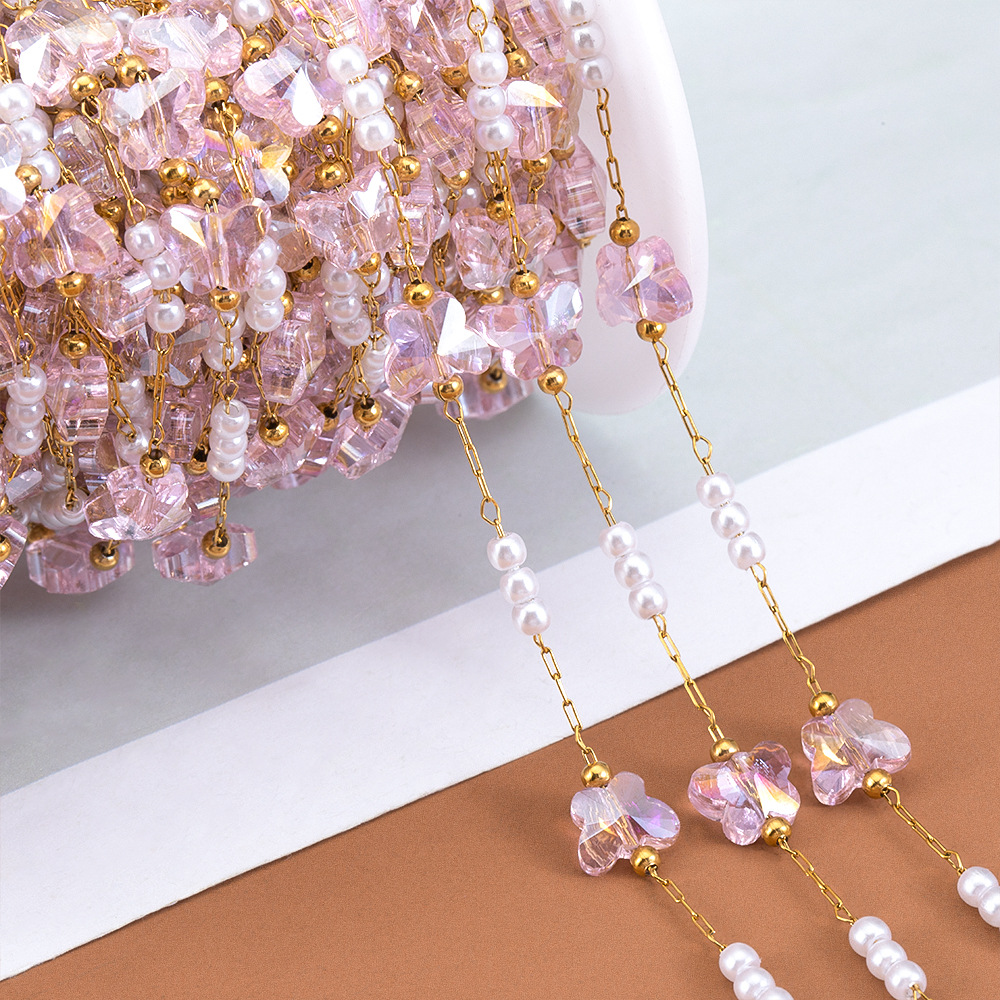 Edelstein Perlen Kette, 304 Edelstahl, mit Kunststoff Perlen & ABS Kunststoff, Schmetterling, plattiert, DIY, farbenfroh, verkauft von m
