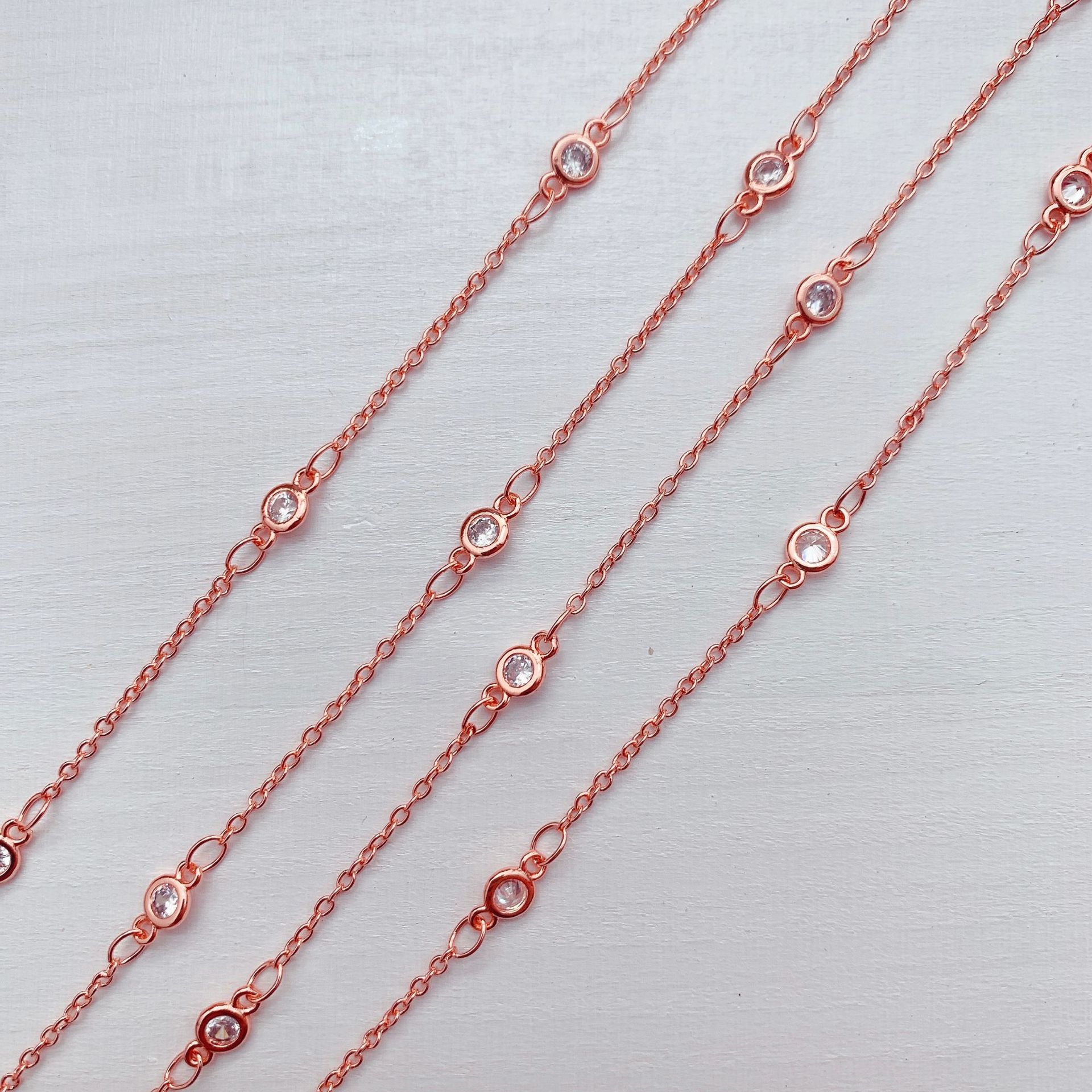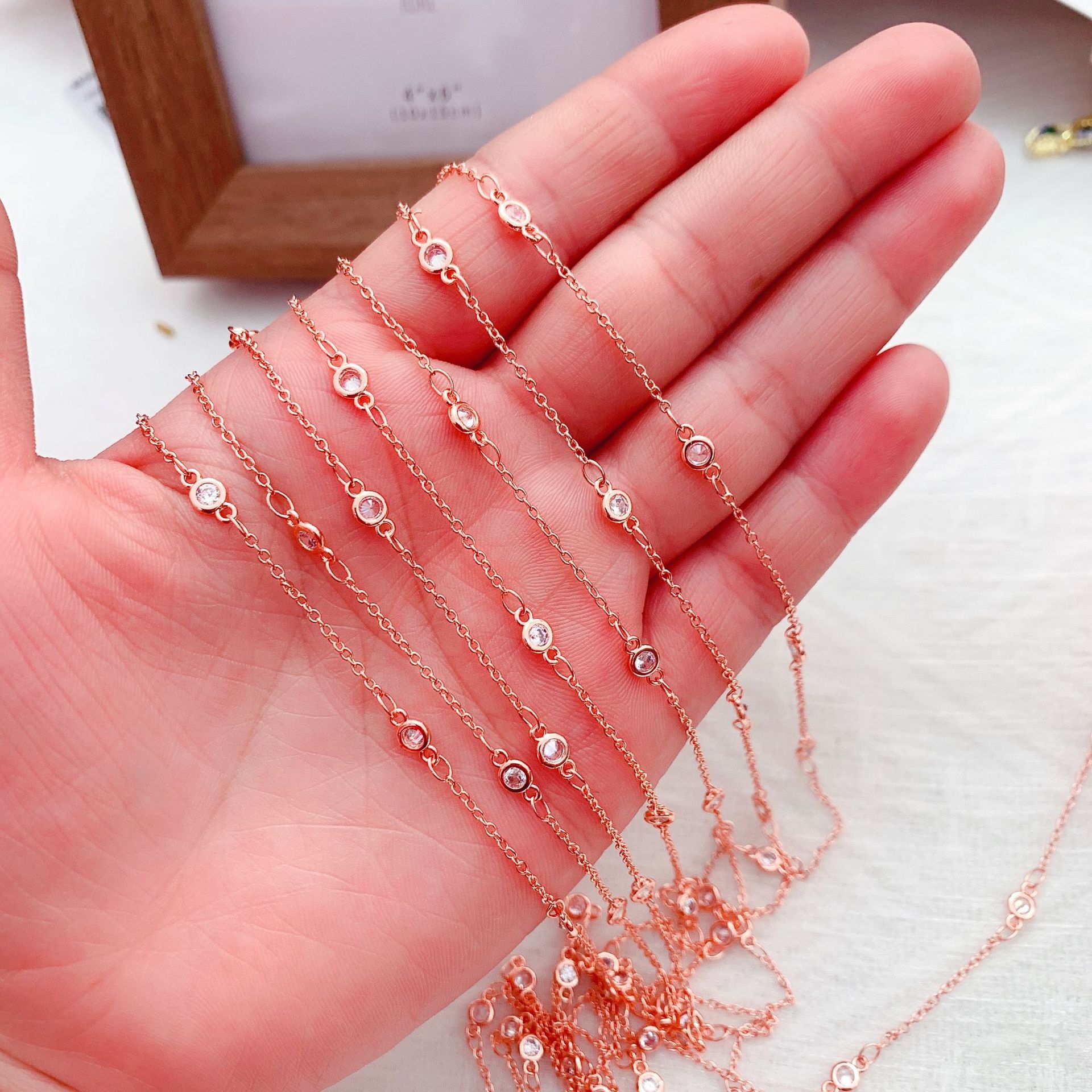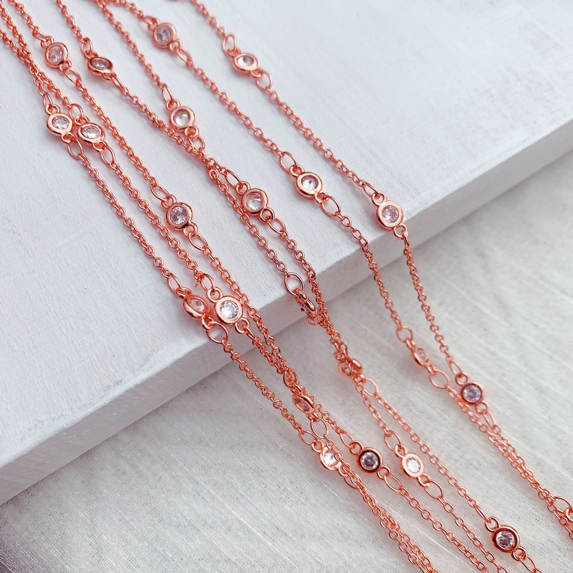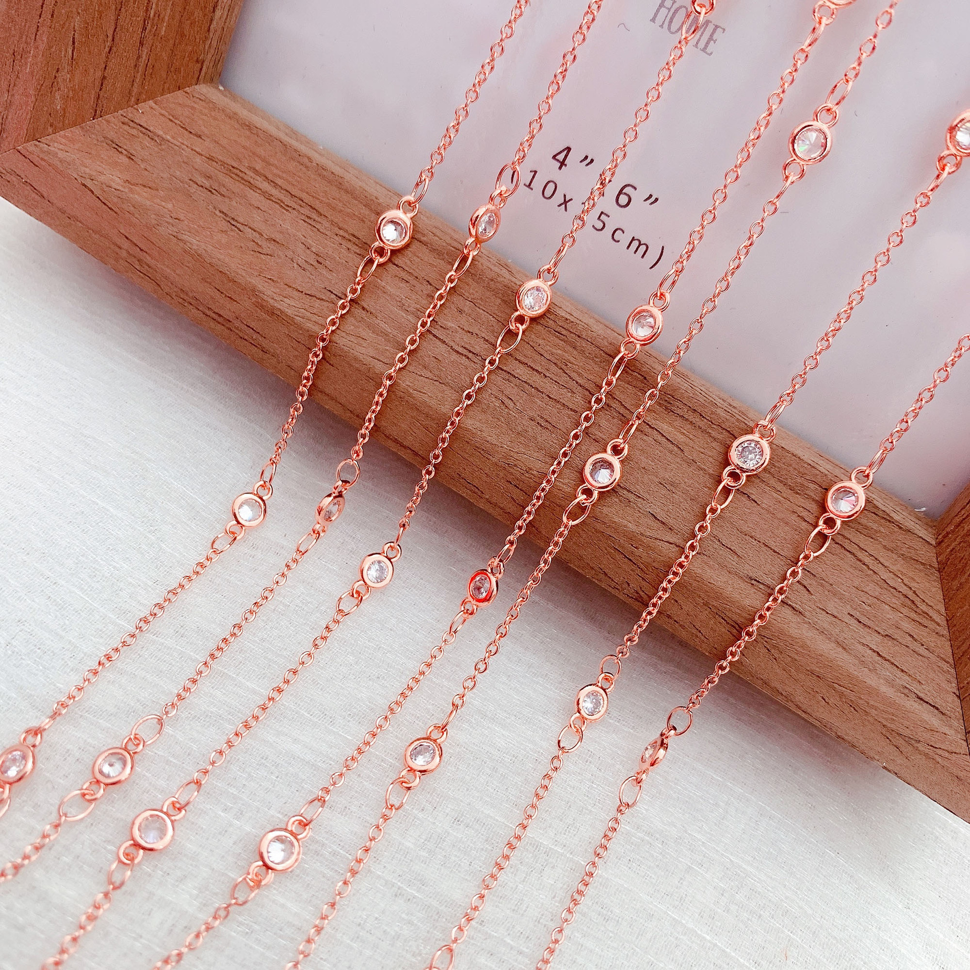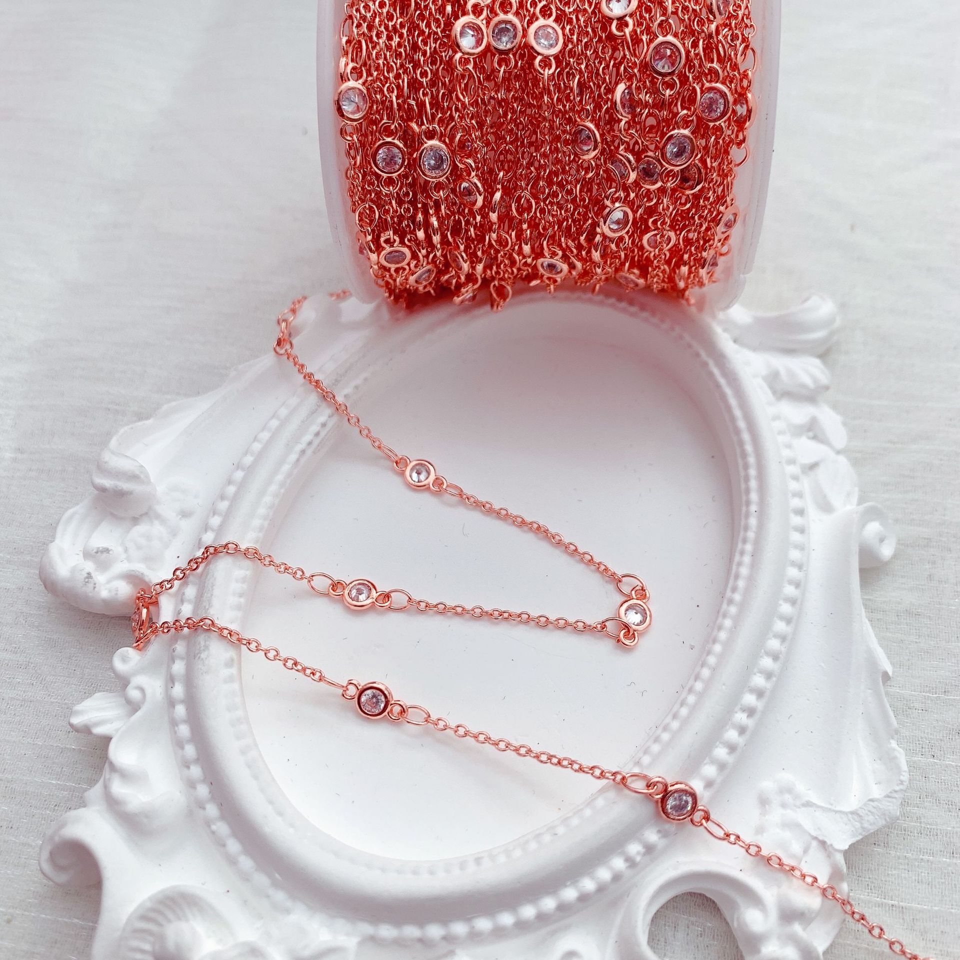 Edelstein Perlen Kette, Messing, mit kubischer Zirkonia, plattiert, DIY, frei von Nickel, Blei & Kadmium, 10m/Tasche, verkauft von Tasche