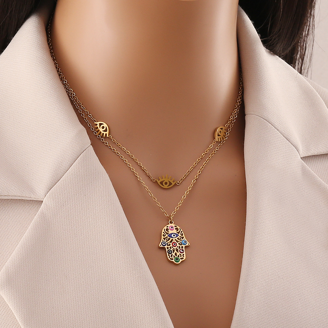 Edelstahl Schmuck Halskette, 304 Edelstahl, plattiert, verschiedene Stile für Wahl & für Frau & Emaille, goldfarben, verkauft von PC