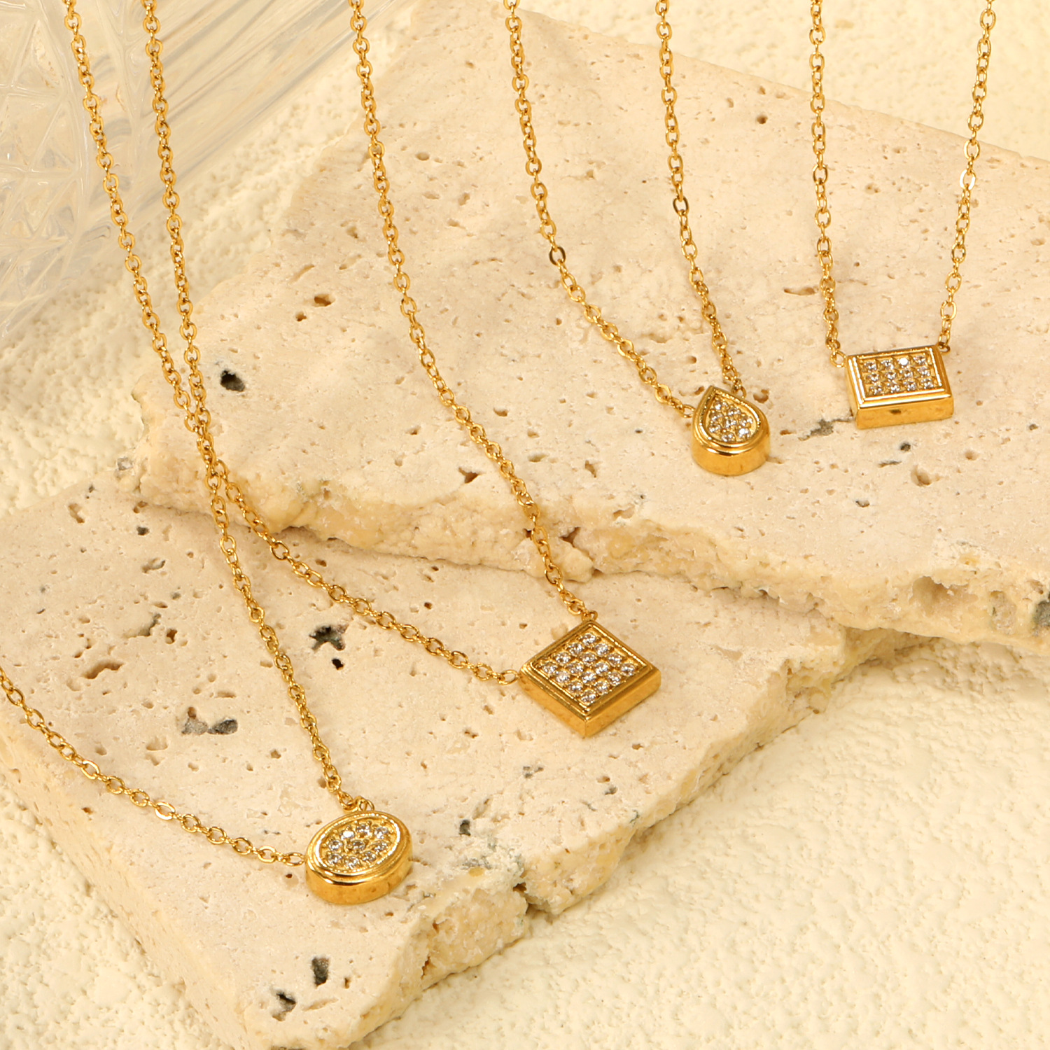 Edelstahl Schmuck Halskette, 304 Edelstahl, plattiert, verschiedene Stile für Wahl & für Frau & mit Strass, goldfarben, verkauft von PC
