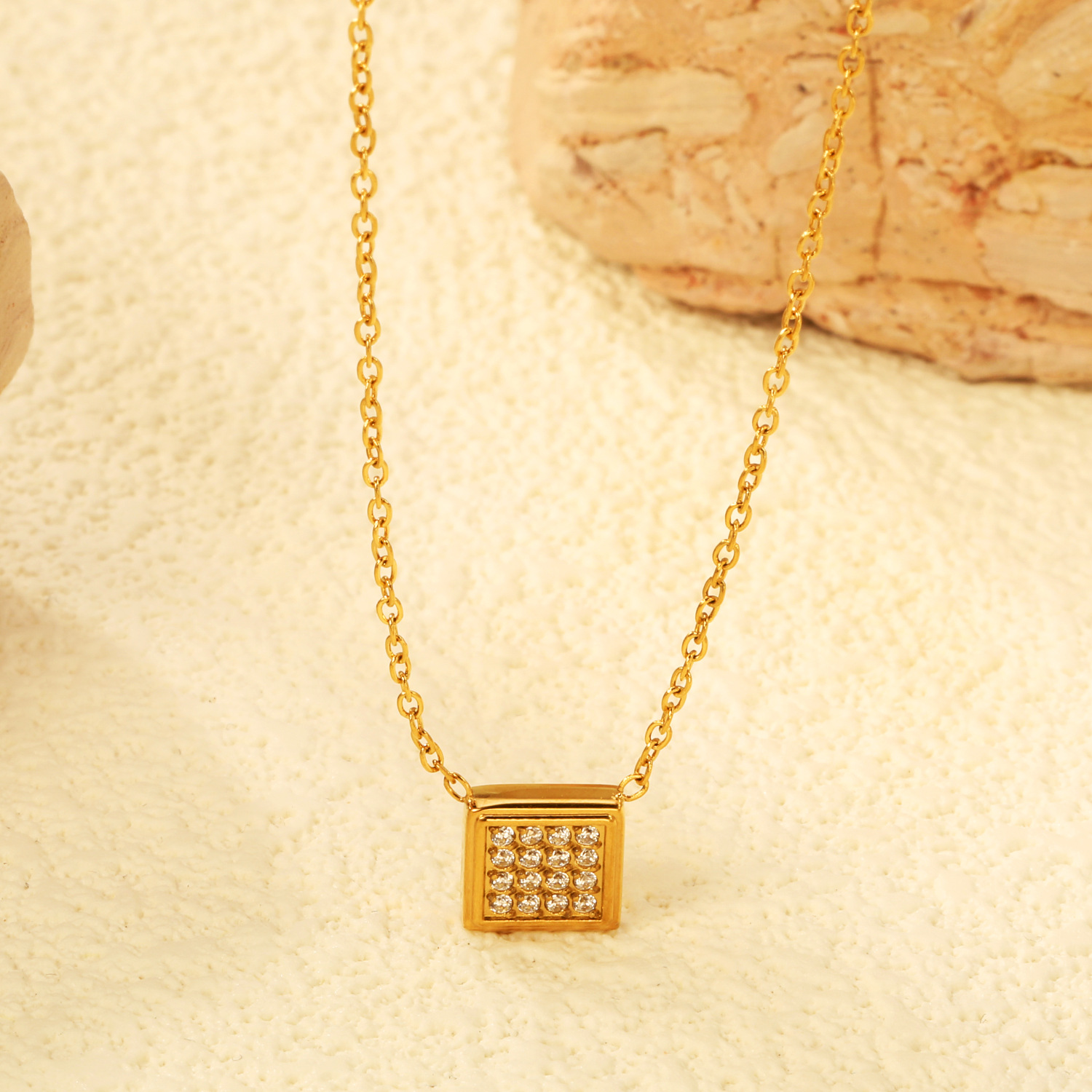 Edelstahl Schmuck Halskette, 304 Edelstahl, plattiert, Modeschmuck & für Frau, goldfarben, Länge ca. 45 cm, verkauft von PC