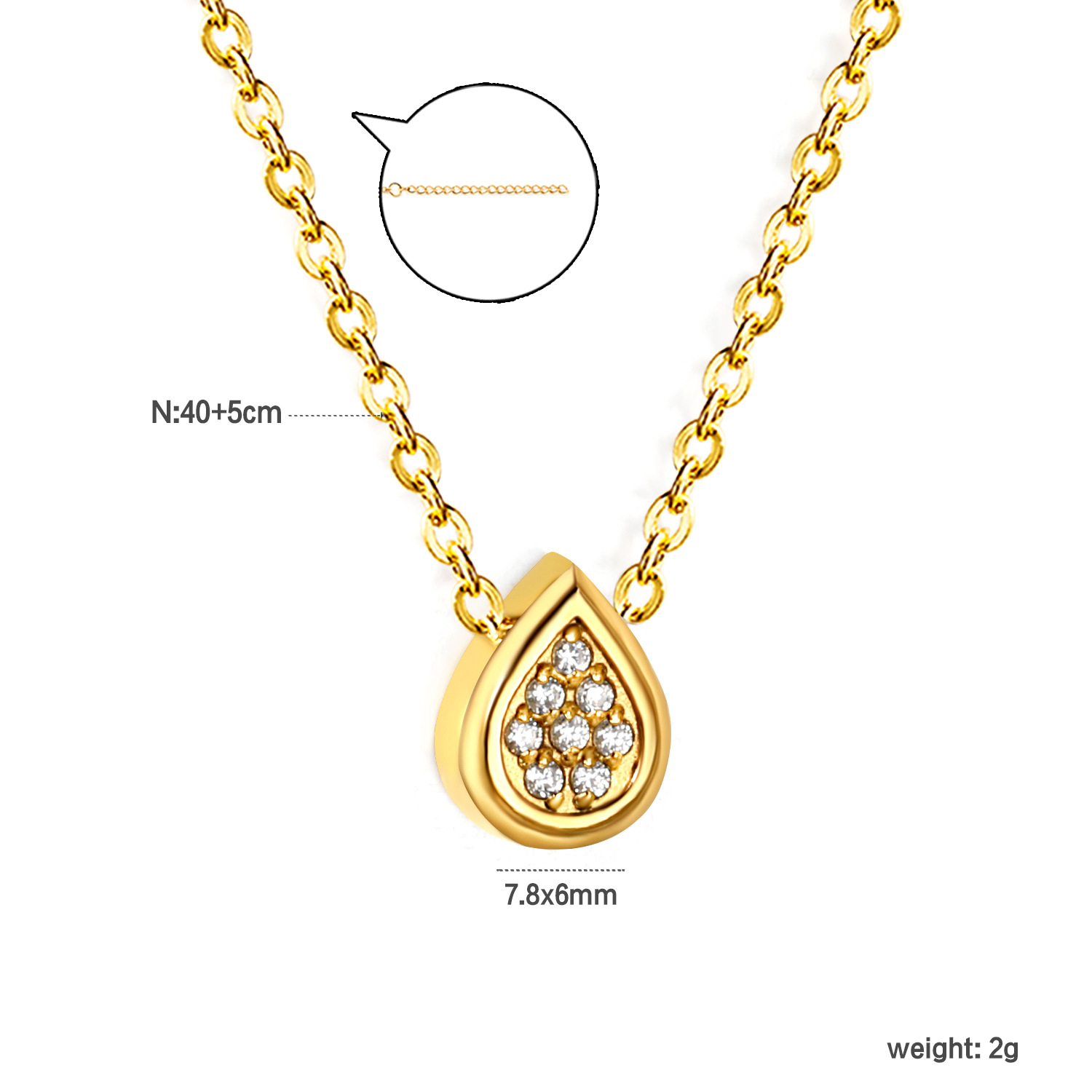 Edelstahl Schmuck Halskette, 304 Edelstahl, mit Verlängerungskettchen von 5cm, goldfarben plattiert, verschiedene Stile für Wahl & für Frau & mit Strass, Länge 40 cm, verkauft von PC