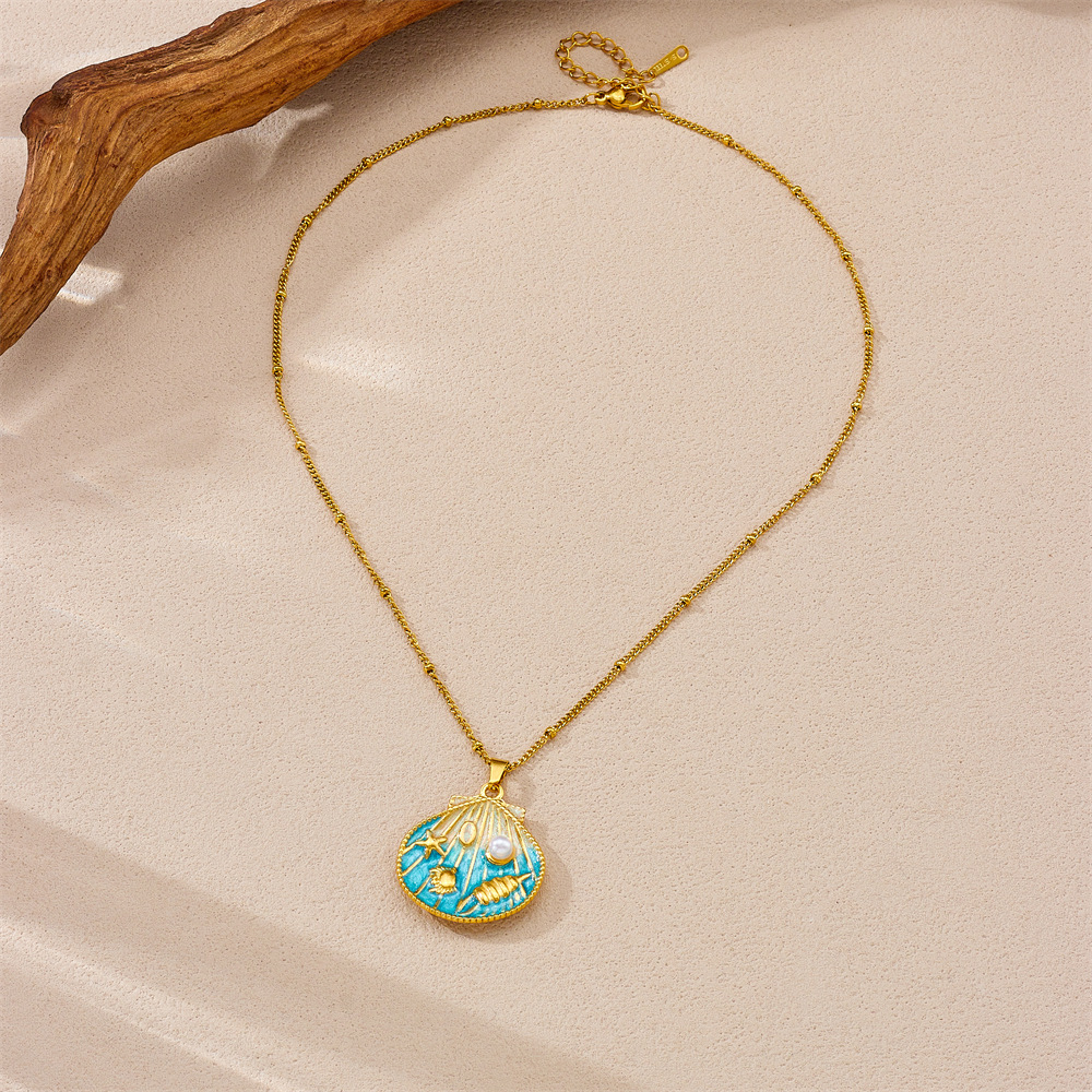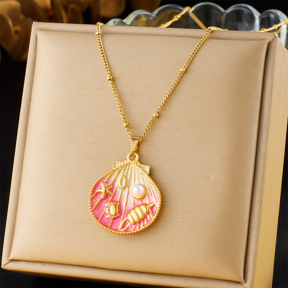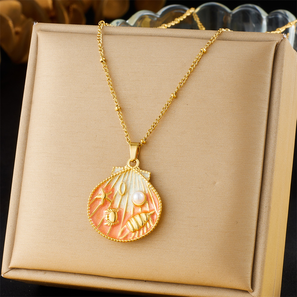 Edelstahl Schmuck Halskette, 304 Edelstahl, mit Kunststoff Perlen, goldfarben plattiert, Modeschmuck & für Frau & Emaille, keine, verkauft von PC
