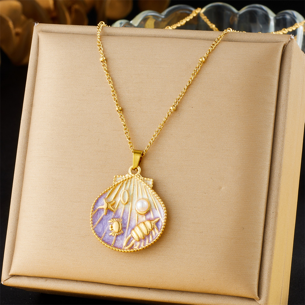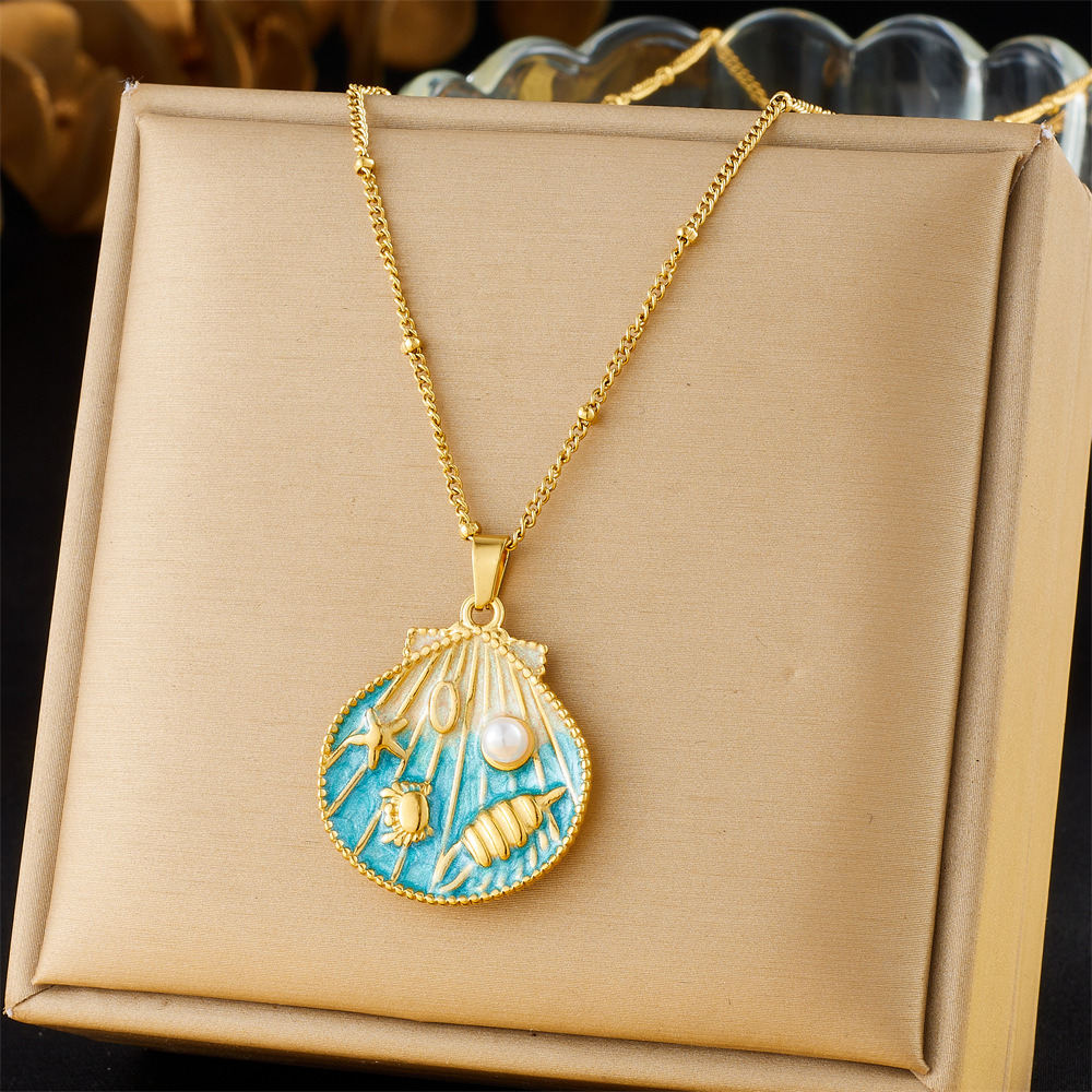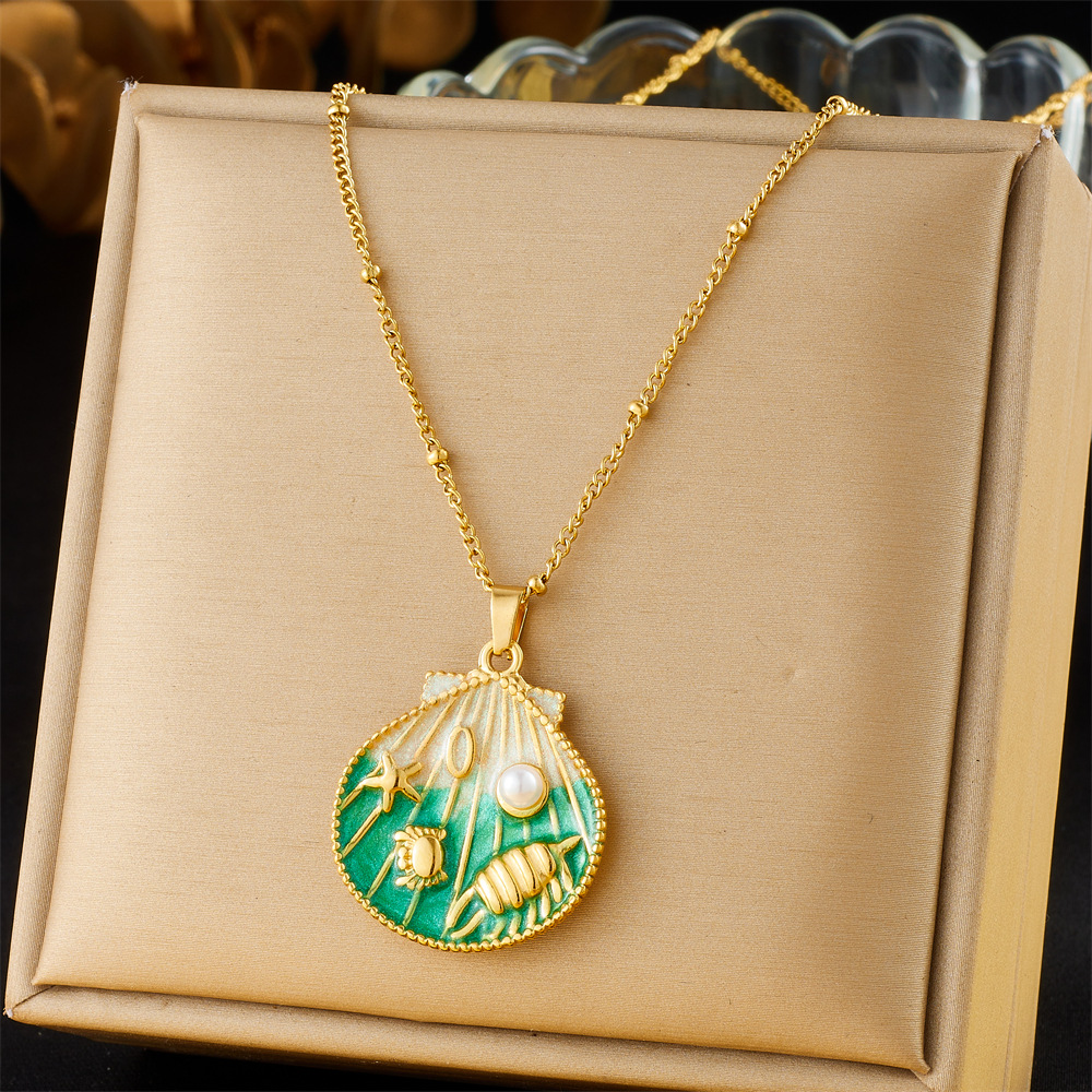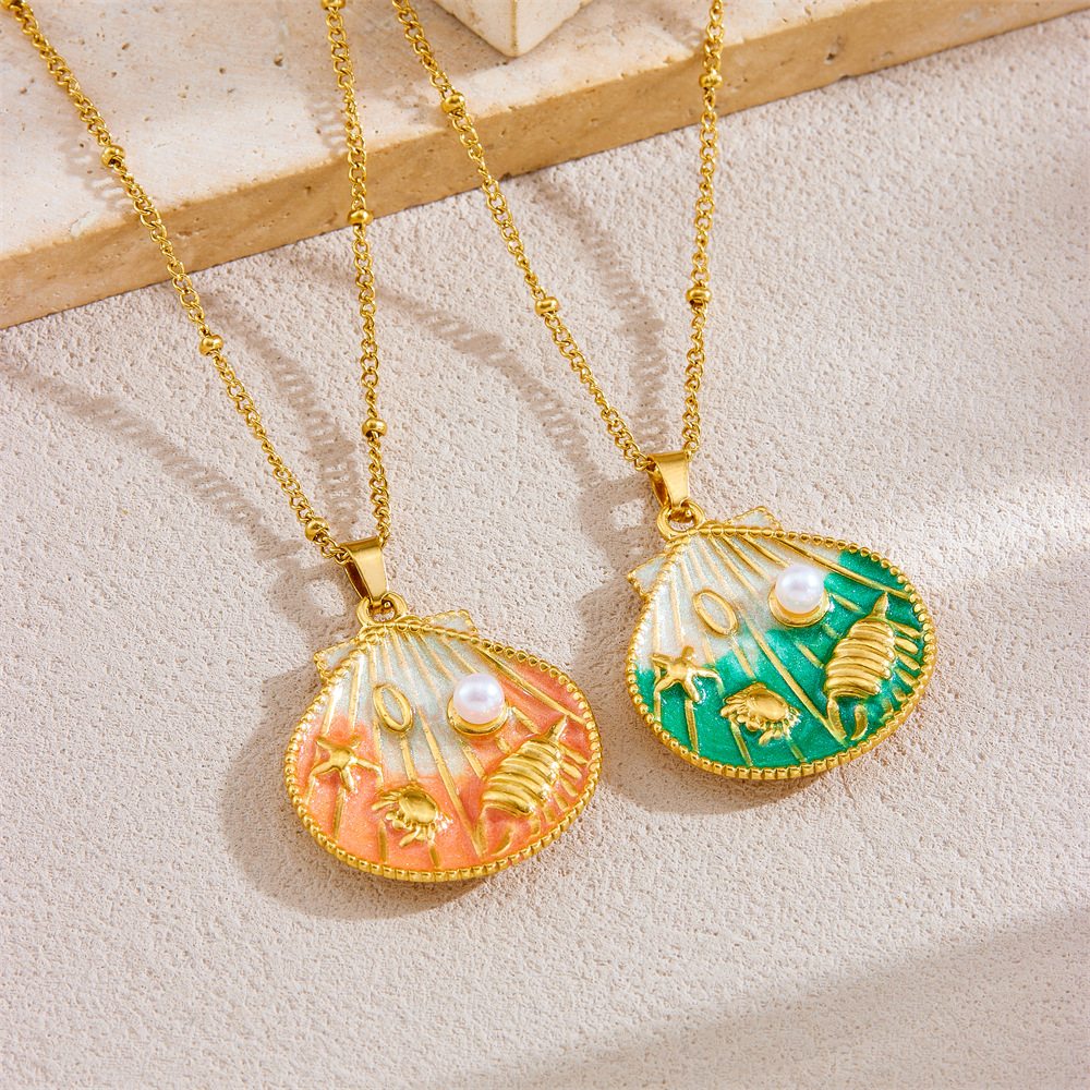 Edelstahl Schmuck Halskette, 304 Edelstahl, mit Kunststoff Perlen, goldfarben plattiert, Modeschmuck & für Frau & Emaille, keine, verkauft von PC