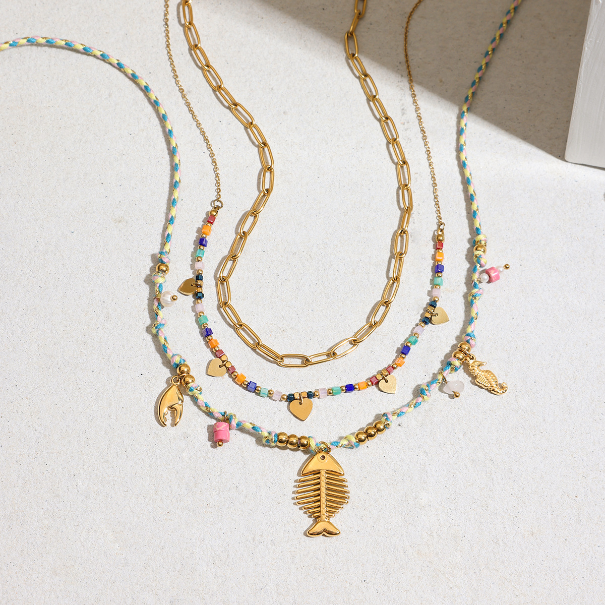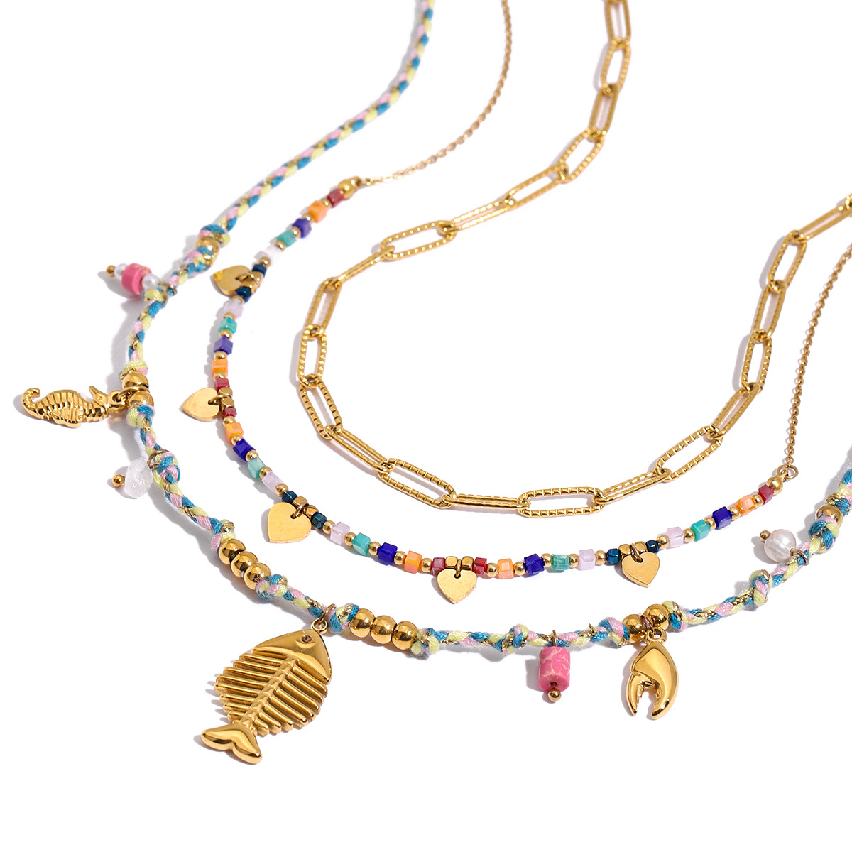 Edelstahl Schmuck Halskette, 304 Edelstahl, mit Baumwollfaden & Kunststoff Perlen, plattiert, Modeschmuck & verschiedene Stile für Wahl & für Frau, verkauft von PC