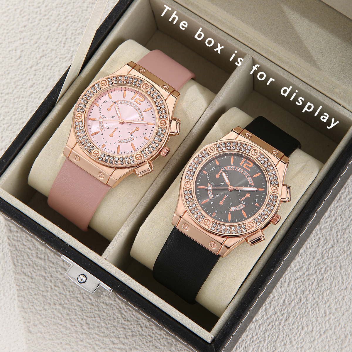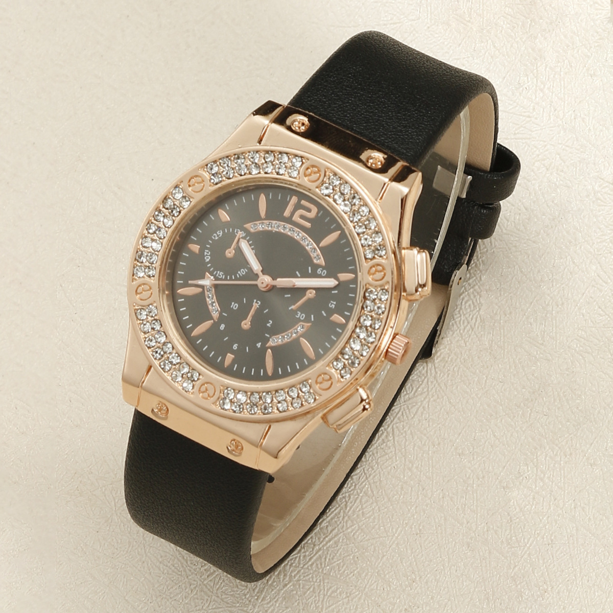 Damen Armbanduhr, Legierung, mit Kunstleder & Glas & 304 Edelstahl, plattiert, Modeschmuck & für den Menschen & mit Strass, keine, Länge 24 cm, verkauft von PC