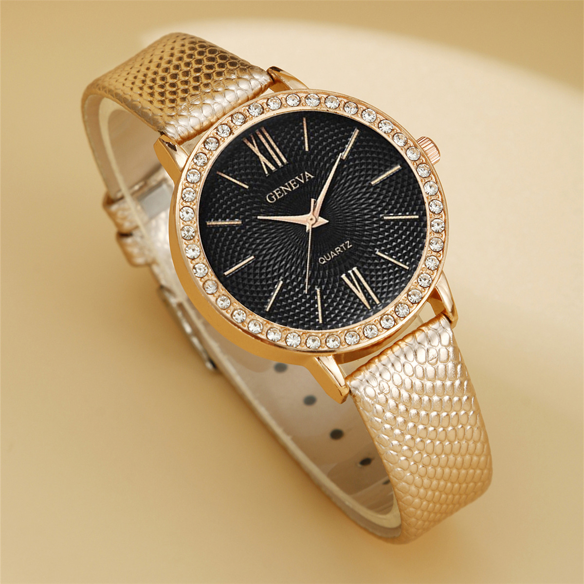 Damen Armbanduhr, Legierung, mit Kunstleder & Glas & 304 Edelstahl, plattiert, Modeschmuck & für den Menschen & mit Strass, keine, Länge 24 cm, verkauft von PC