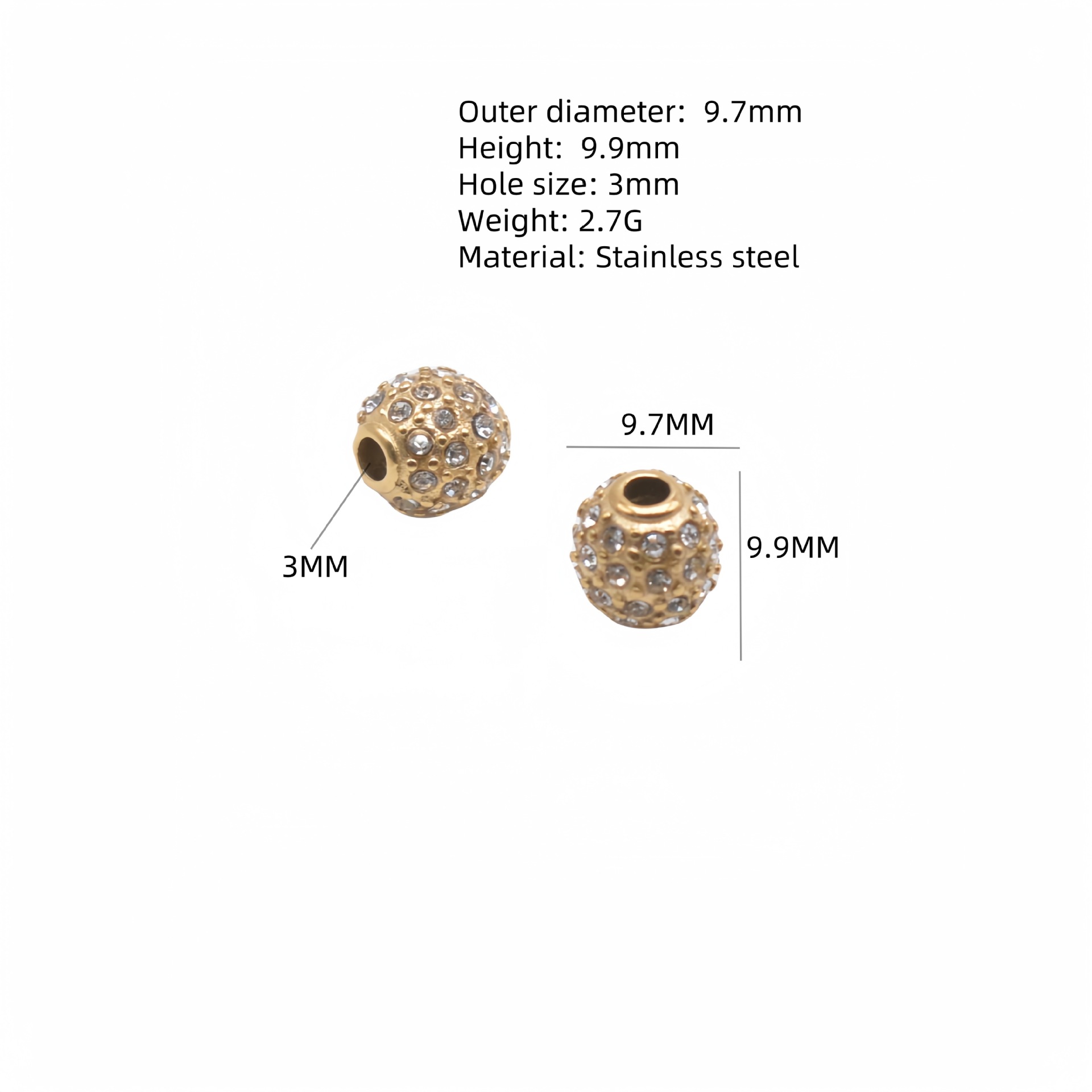 Edelstahl-Beads, 304 Edelstahl, rund, plattiert, DIY & mit Strass, keine, verkauft von PC