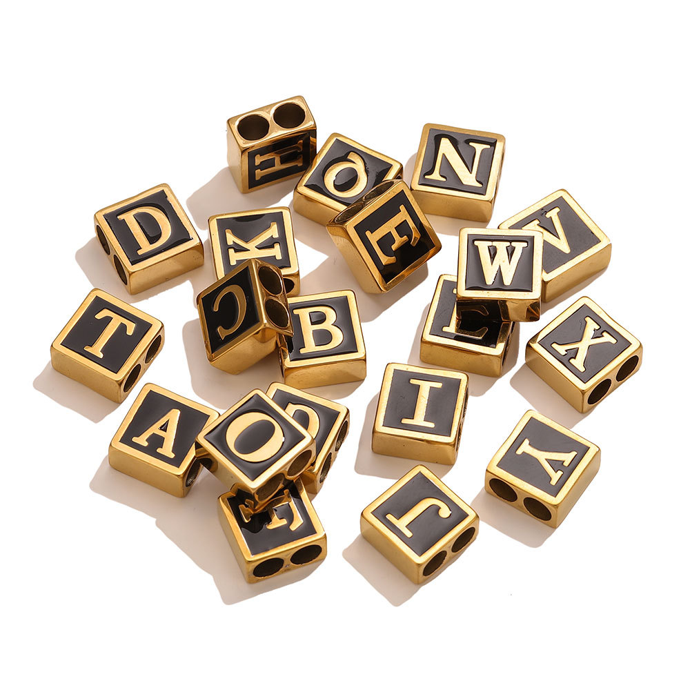 Edelstahl-Distanzscheiben-Korn, 304 Edelstahl, Quadrat, goldfarben plattiert, DIY & verschiedene Muster für Wahl & Emaille, 12x12x6mm, Bohrung:ca. 4.2mm, verkauft von PC