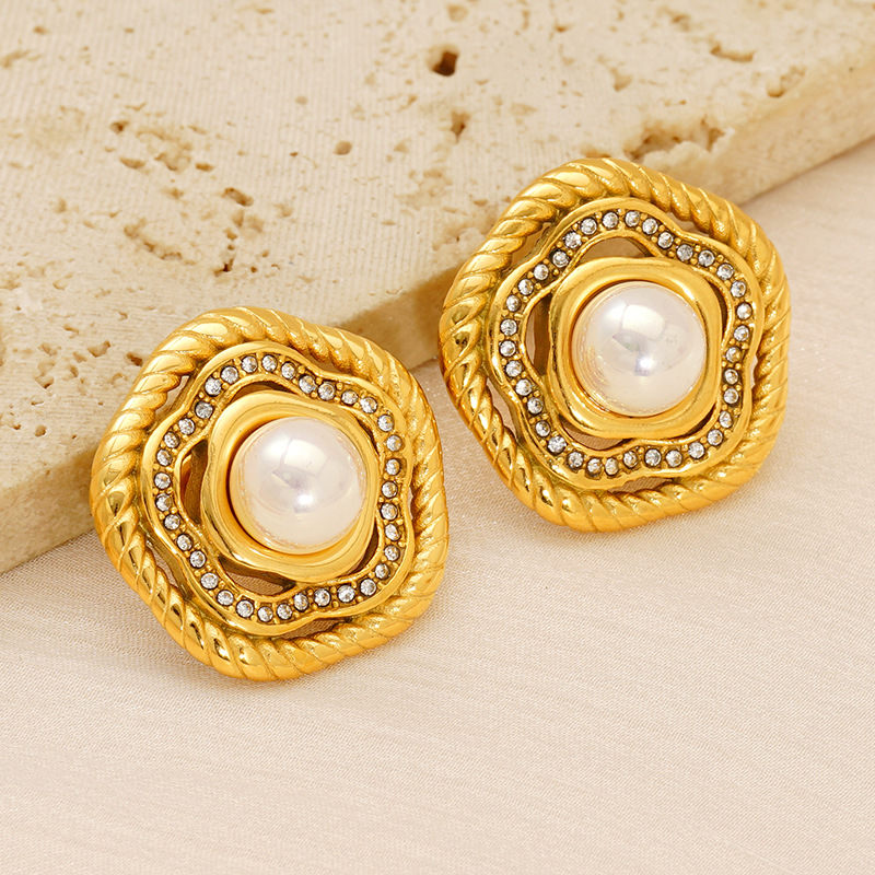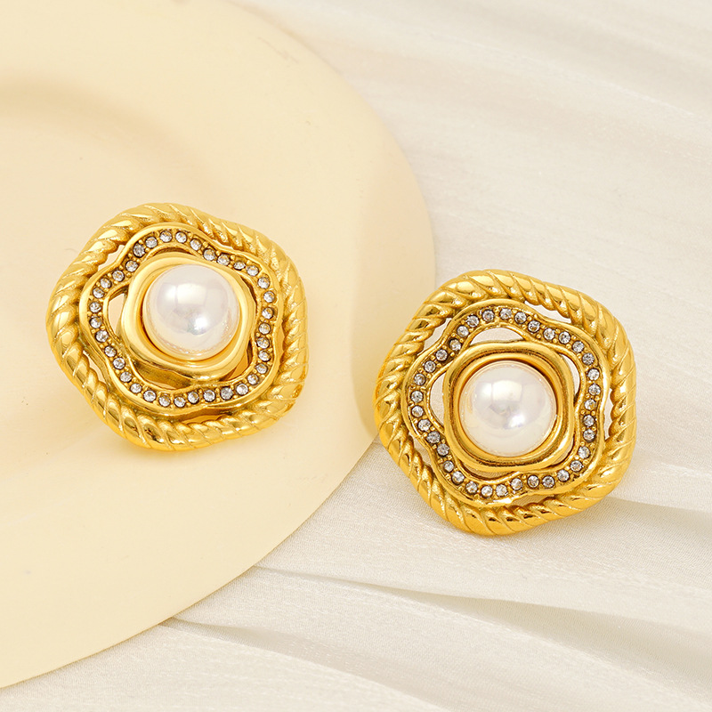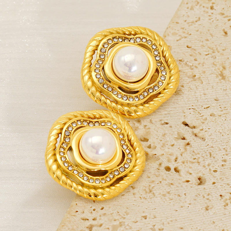 Edelstahl Ohrringe, 304 Edelstahl, mit Kunststoff Perlen, Stern, 18K vergoldet, Modeschmuck & Micro pave Zirkonia & für Frau, verkauft von Paar