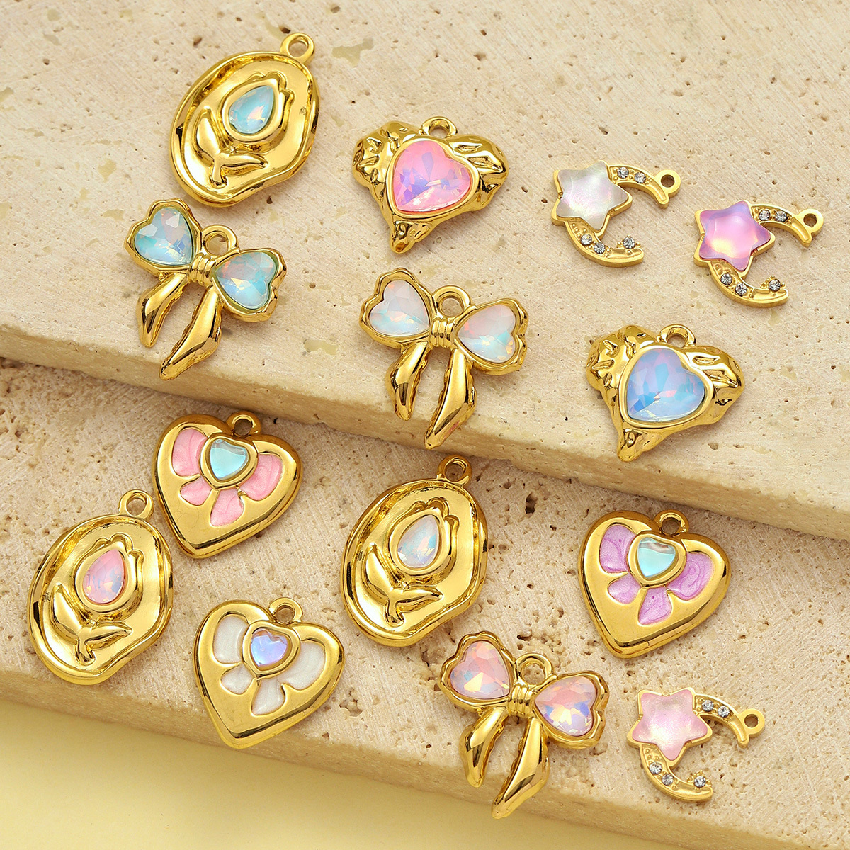 Edelstahl Schmuck Anhänger, 304 Edelstahl, mit Glas, goldfarben plattiert, DIY & verschiedene Stile für Wahl & Emaille & mit Strass, 3PCs/Tasche, verkauft von Tasche