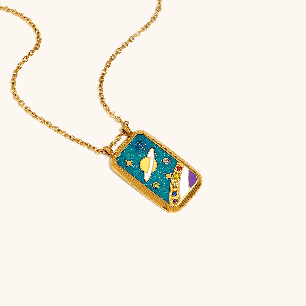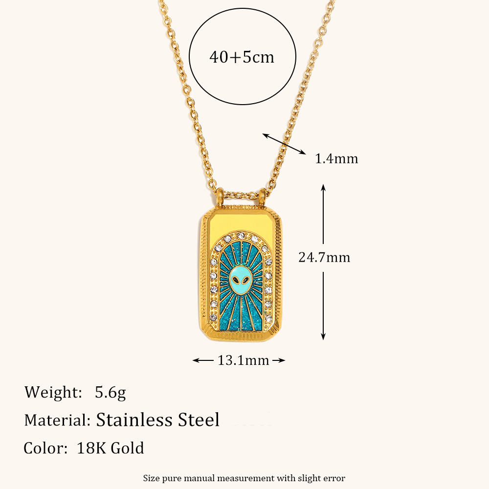 Edelstahl Schmuck Halskette, 304 Edelstahl, Rechteck, goldfarben plattiert, verschiedene Muster für Wahl & für Frau & Emaille & mit Strass, keine, verkauft von PC