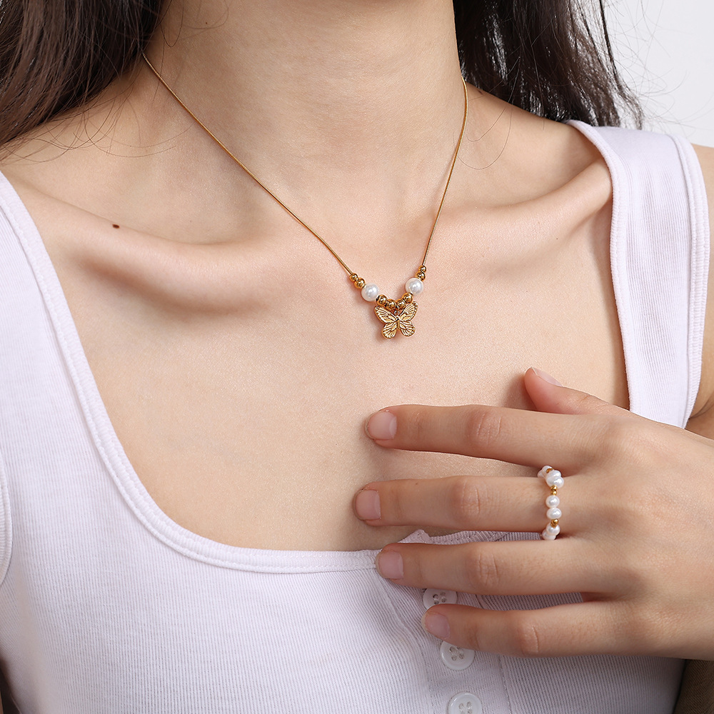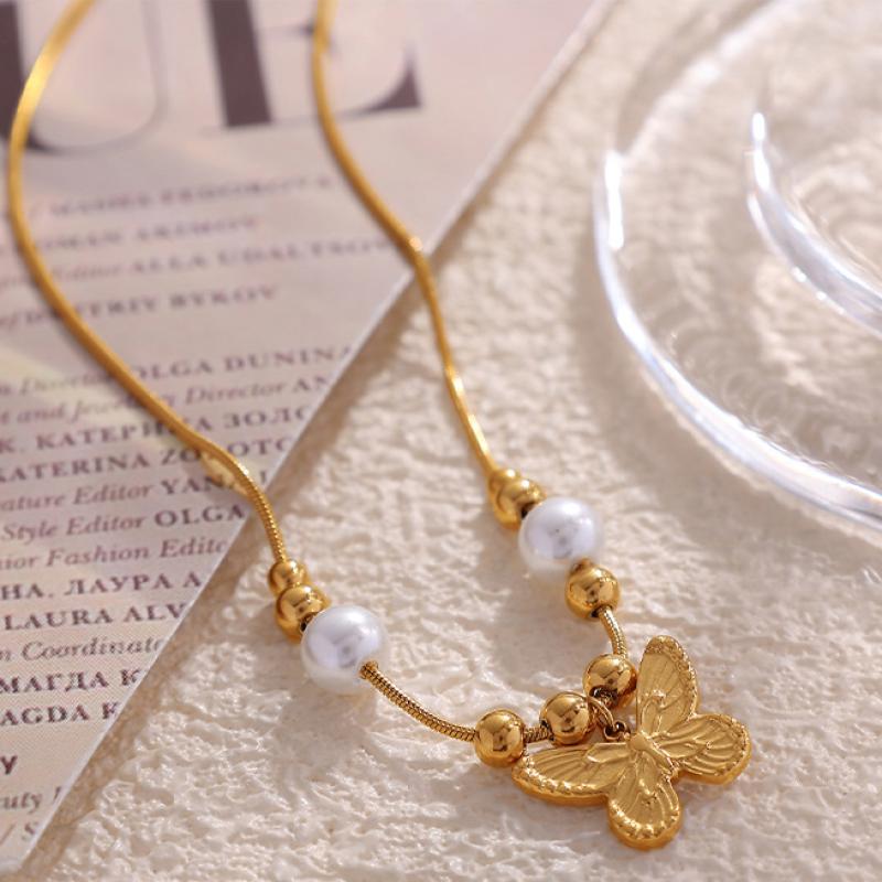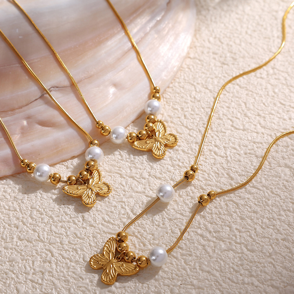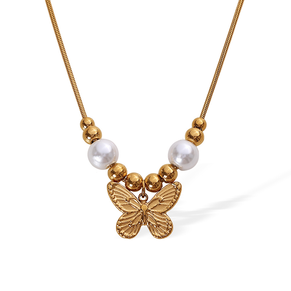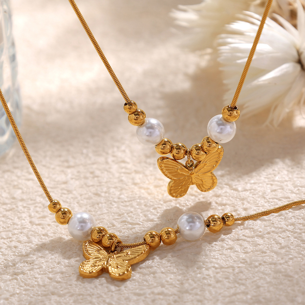 Edelstahl Schmuck Halskette, 304 Edelstahl, mit Glasperlen, plattiert, Modeschmuck & für Frau, goldfarben, verkauft von PC