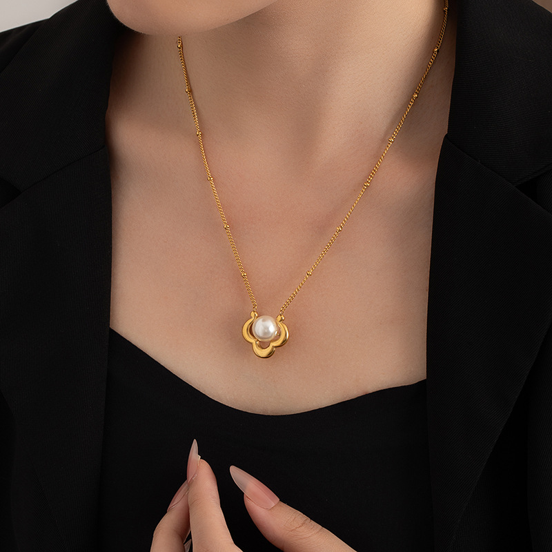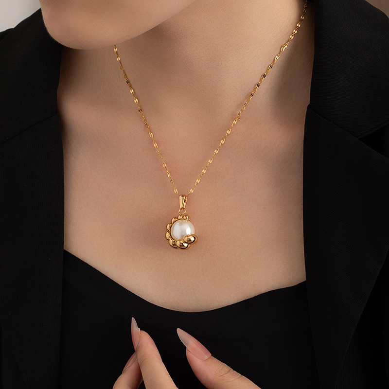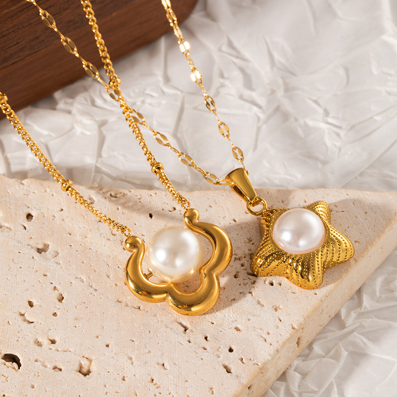 Edelstahl Schmuck Halskette, 304 Edelstahl, mit Kunststoff Perlen, plattiert, Modeschmuck & verschiedene Stile für Wahl & für Frau, goldfarben, verkauft von PC