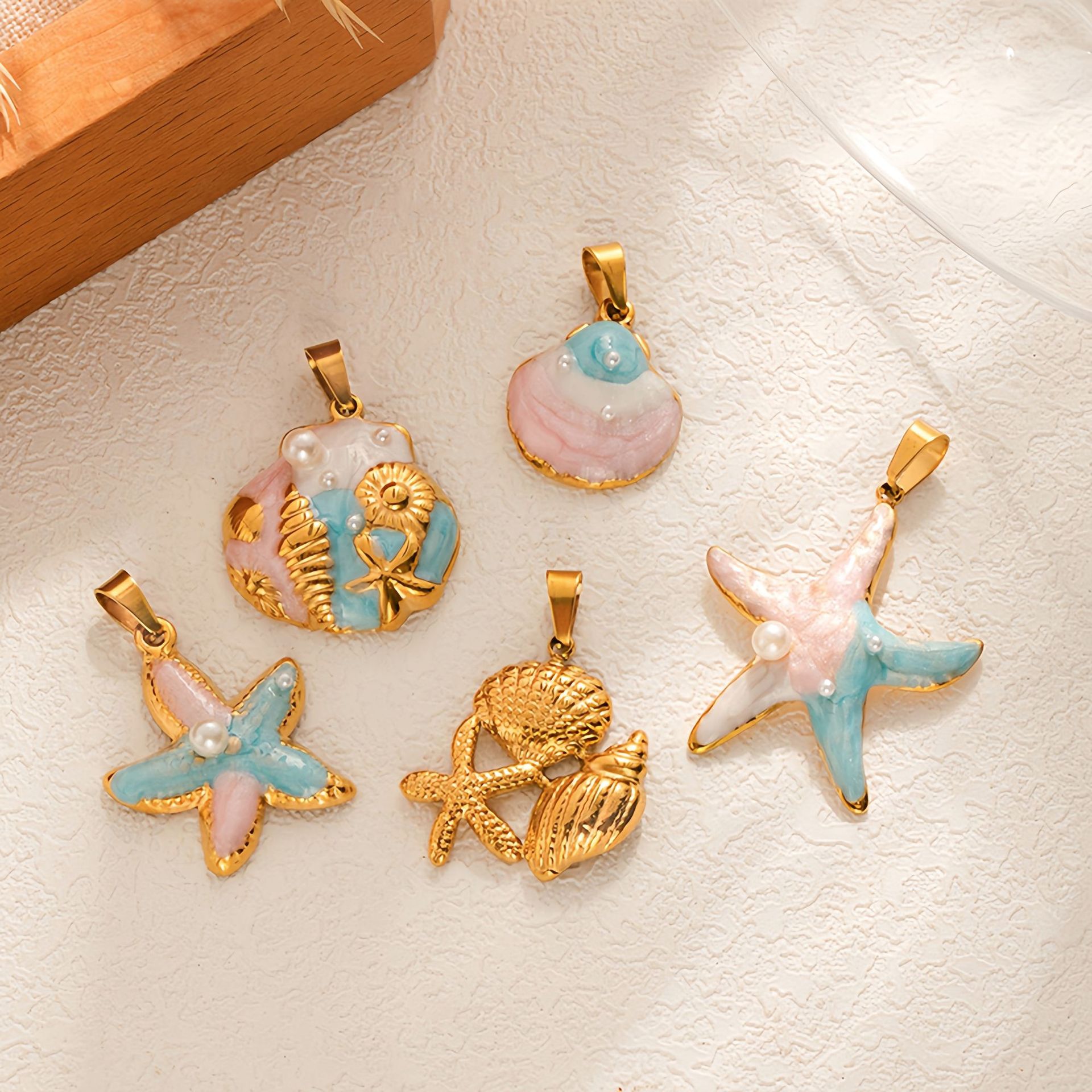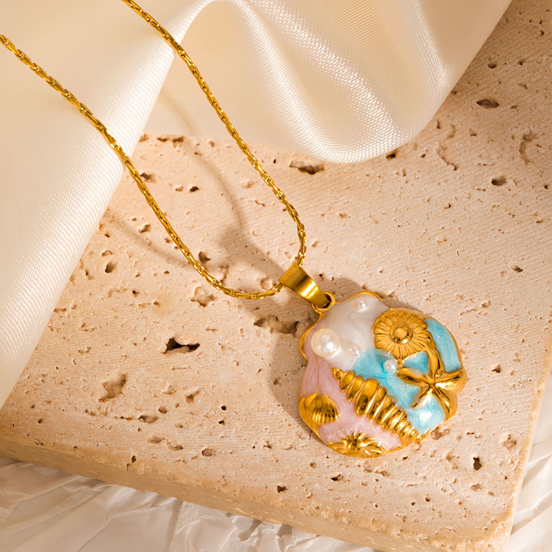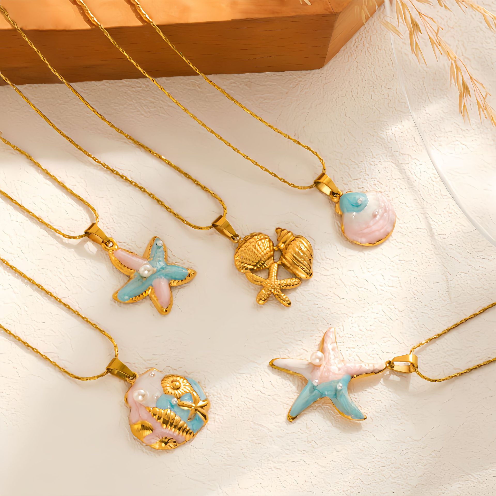 Edelstahl Schmuck Halskette, 304 Edelstahl, mit Kunststoff Perlen, plattiert, verschiedene Stile für Wahl & für Frau & Emaille, goldfarben, verkauft von PC