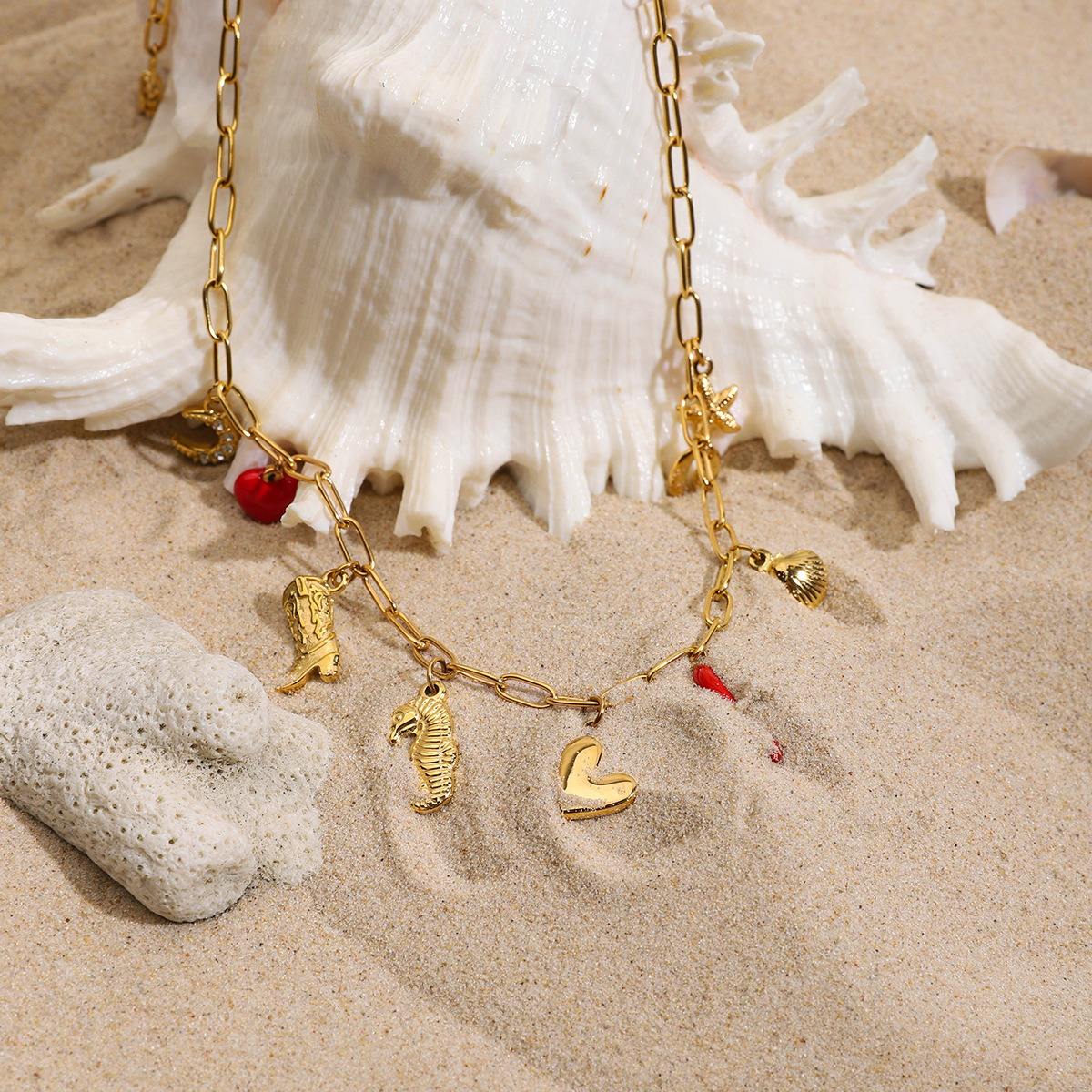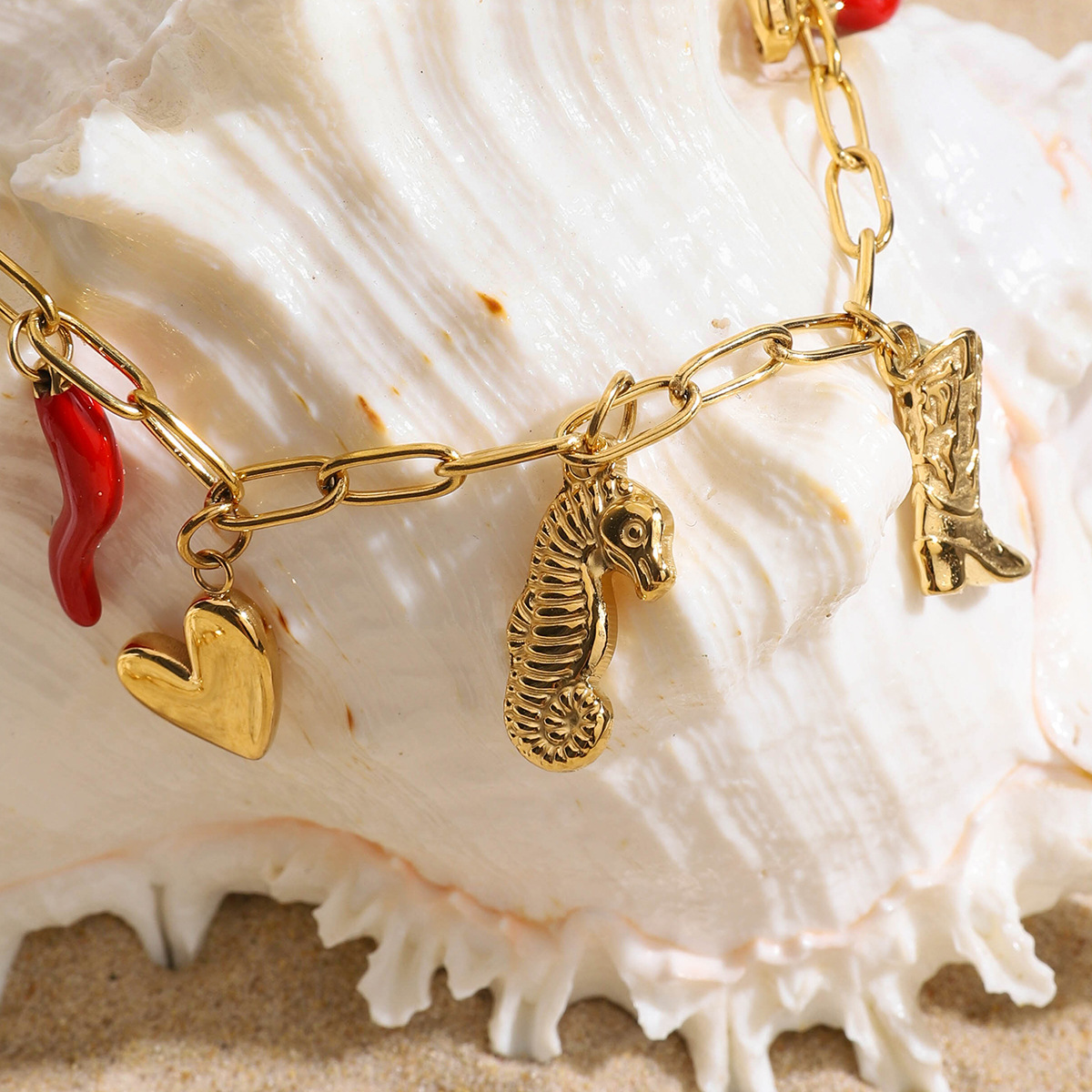 Edelstahl Schmuck Halskette, 304 Edelstahl, plattiert, verschiedene Stile für Wahl & für Frau & Emaille, goldfarben, verkauft von PC