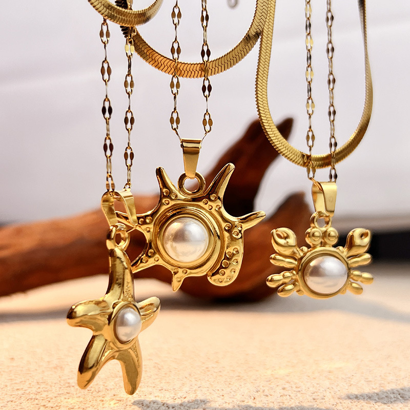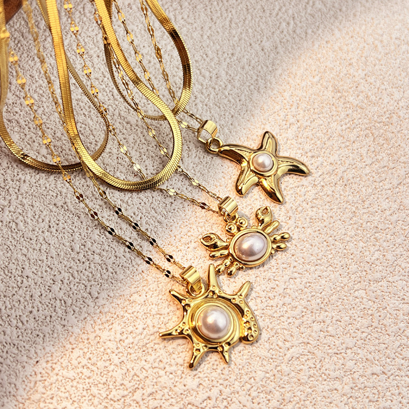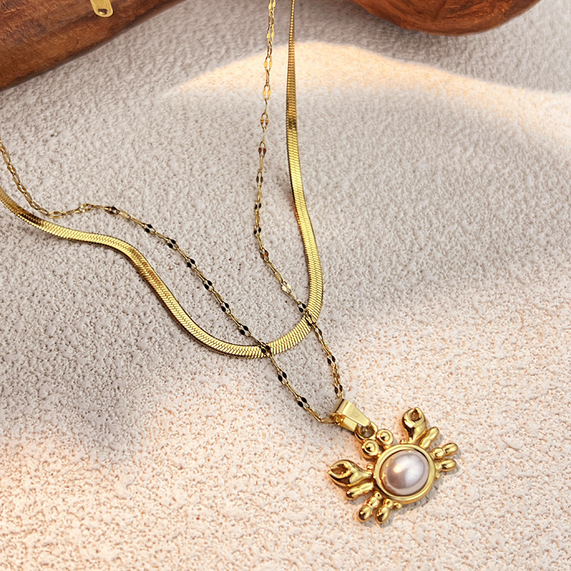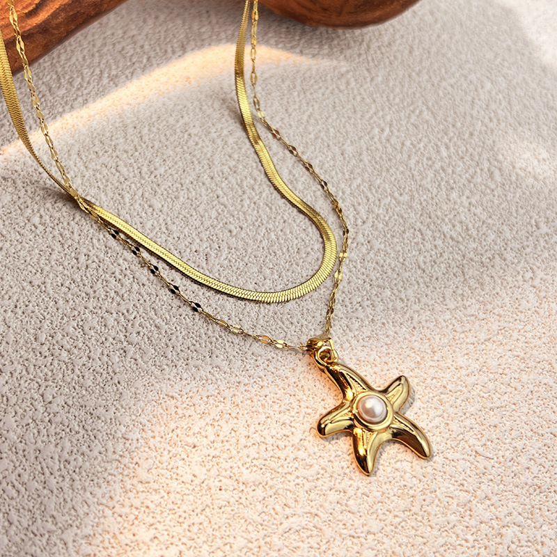 Edelstahl Schmuck Halskette, 304 Edelstahl, mit Kunststoff Perlen, plattiert, Doppelschicht & verschiedene Stile für Wahl & für Frau, goldfarben, verkauft von PC