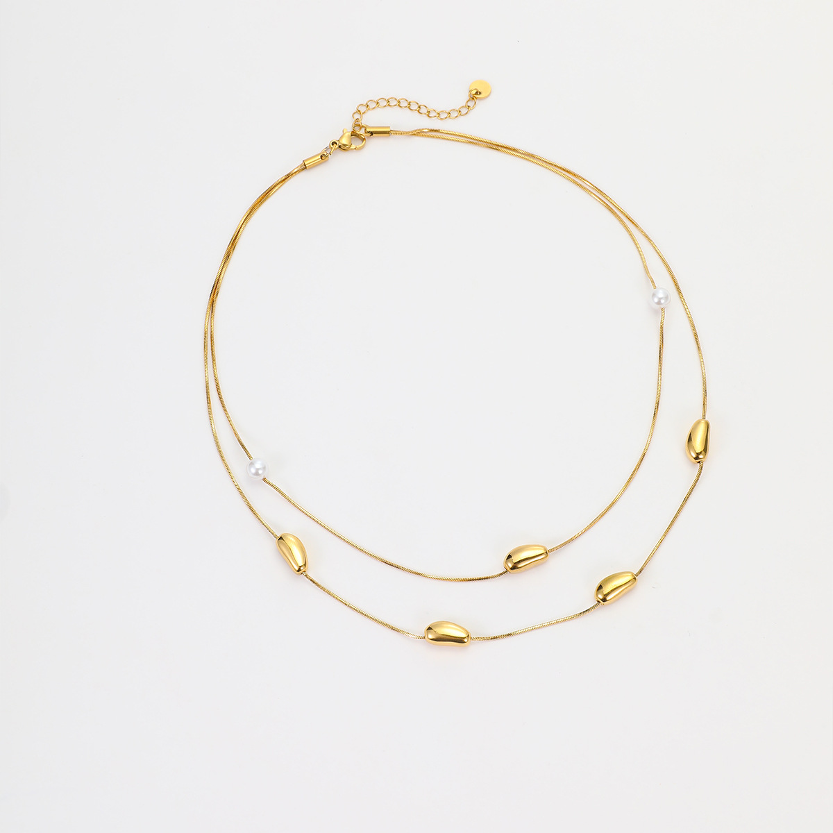 Edelstahl Schmuck Halskette, 304 Edelstahl, mit Kunststoff Perlen, plattiert, Doppelschicht & Modeschmuck & für Frau, keine, verkauft von PC