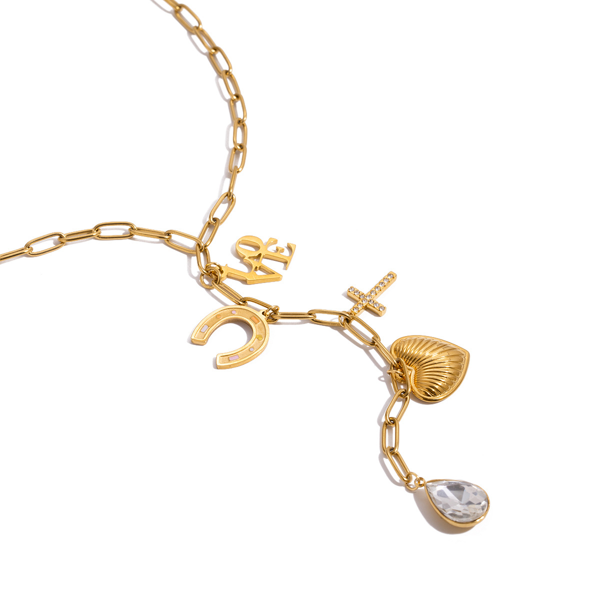 Edelstahl Schmuck Halskette, 304 Edelstahl, goldfarben plattiert, Modeschmuck & mit Strass, keine, verkauft von PC