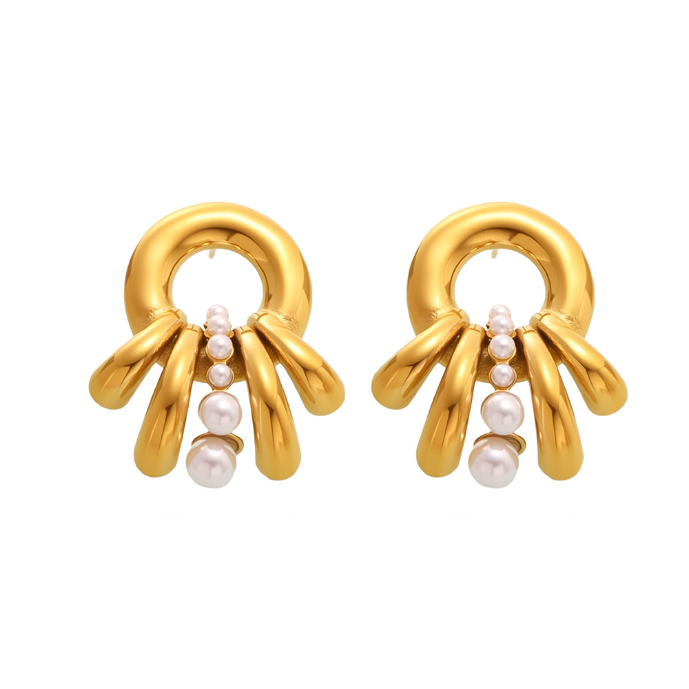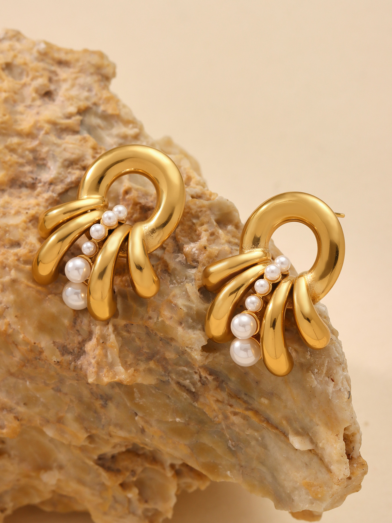 Edelstahl Tropfen Ohrring, 304 Edelstahl, mit Kunststoff Perlen, goldfarben plattiert, Modeschmuck, keine, verkauft von Paar