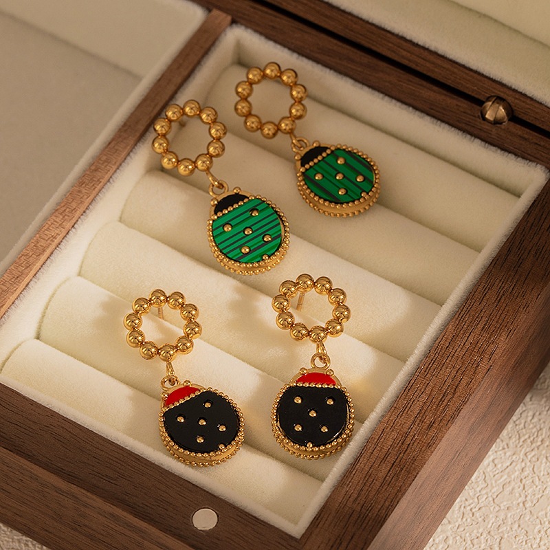 Edelstahl Tropfen Ohrring, 304 Edelstahl, mit Acryl, Marienkäfer, 18K vergoldet, Modeschmuck & für Frau & hohl, keine, verkauft von Paar