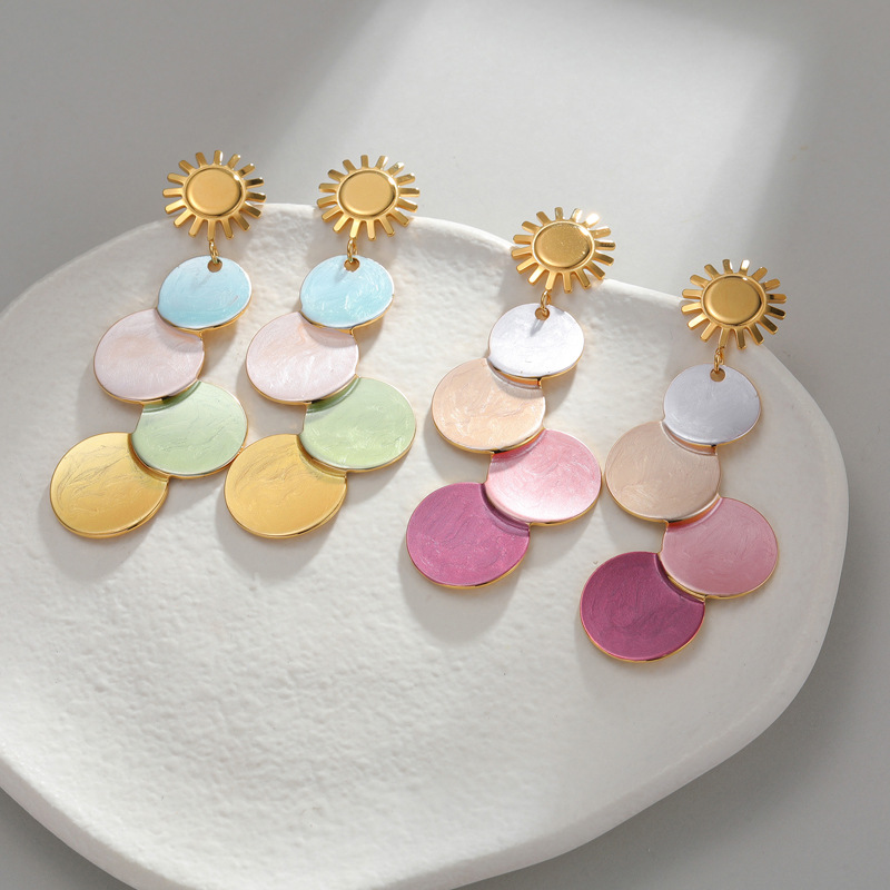 Edelstahl Tropfen Ohrring, goldfarben plattiert, für Frau & Emaille, keine, 18x70mm, verkauft von Paar