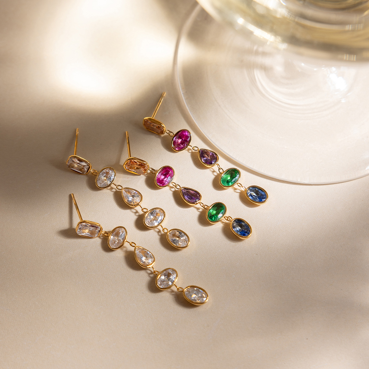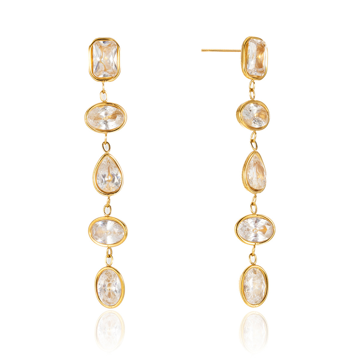 Edelstahl Tropfen Ohrring, mit kubischer Zirkonia, 18K vergoldet, Modeschmuck & für Frau, keine, 6.90x44.80mm, verkauft von Paar