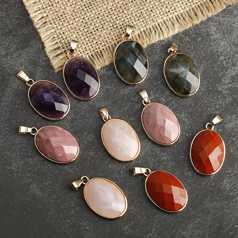 Edelstein Anhänger Schmuck, Naturstein, mit Zinklegierung, oval, goldfarben plattiert, DIY & verschiedenen Materialien für die Wahl, keine, 18x25mm, verkauft von PC