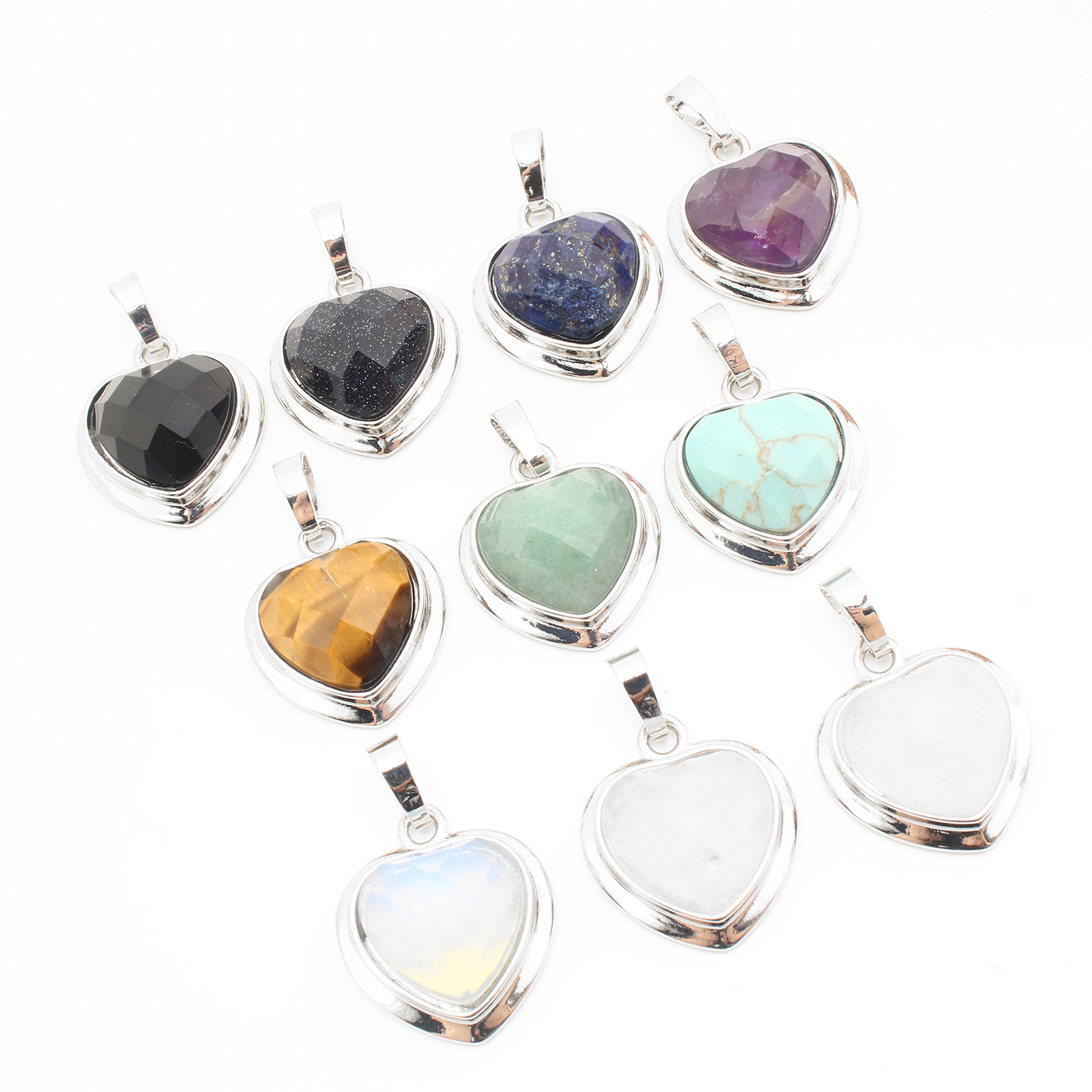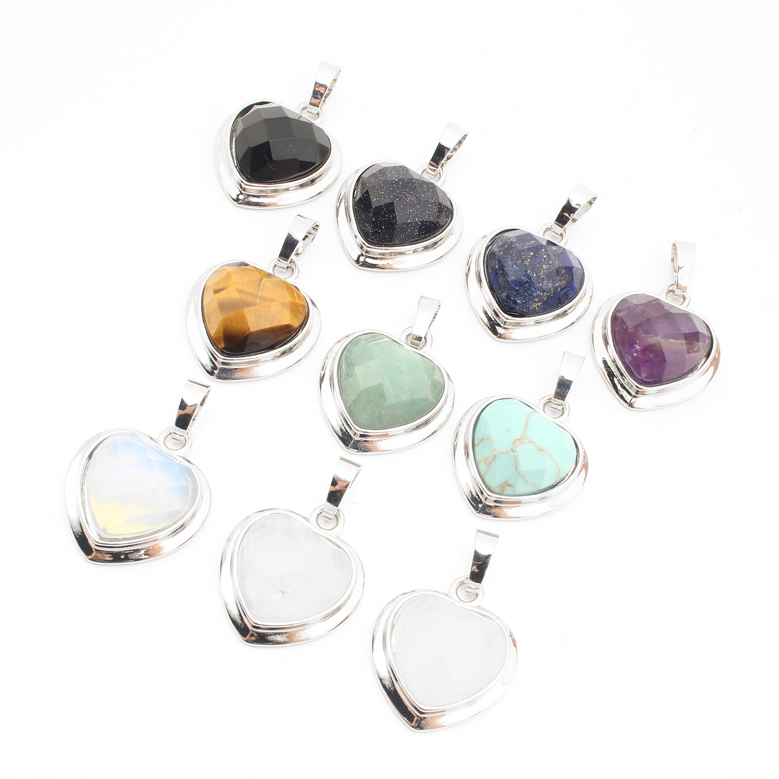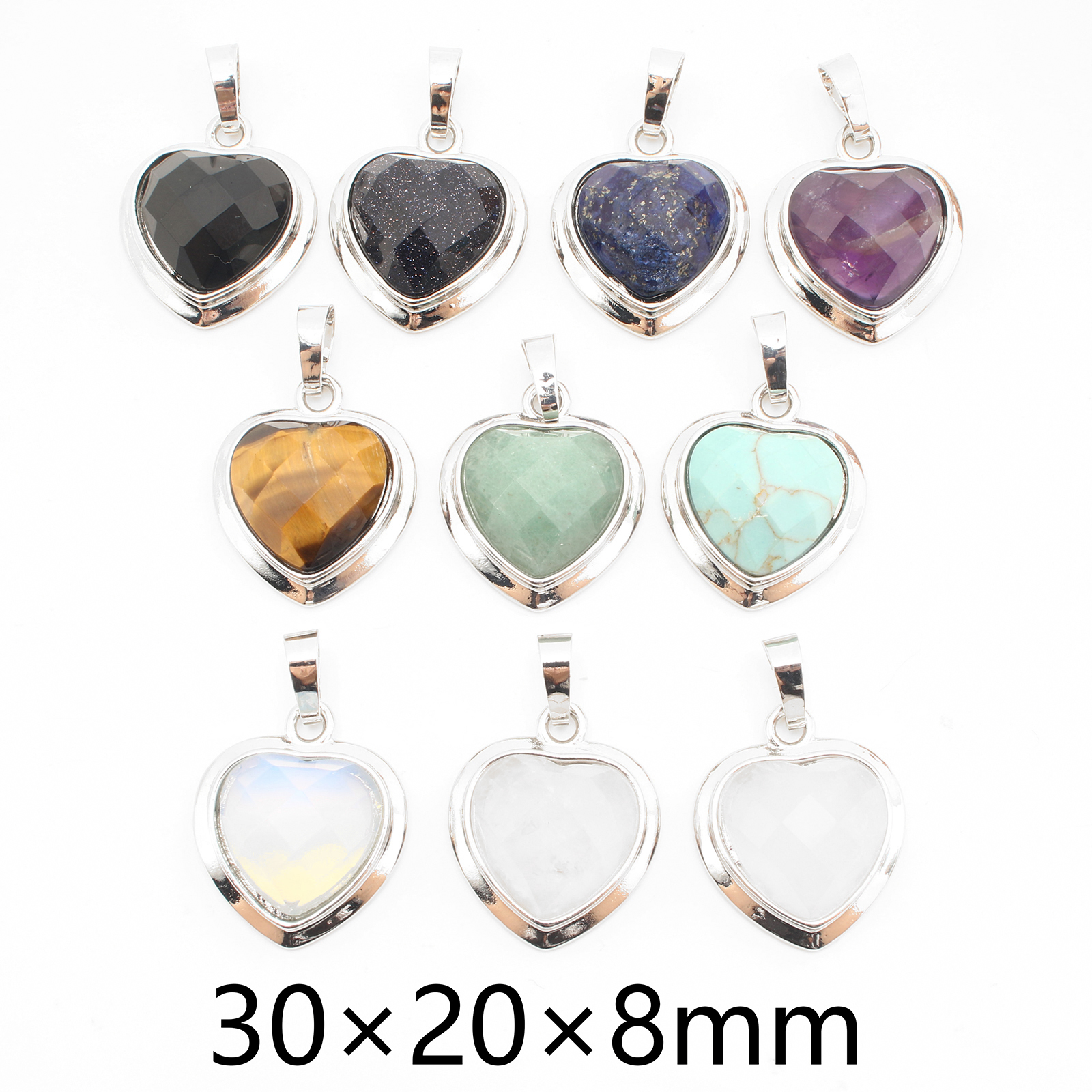 Edelstein Anhänger Schmuck, Messing, mit Edelstein, Herz, Platinfarbe platiniert, DIY & verschiedenen Materialien für die Wahl, 30x20x8mm, verkauft von PC