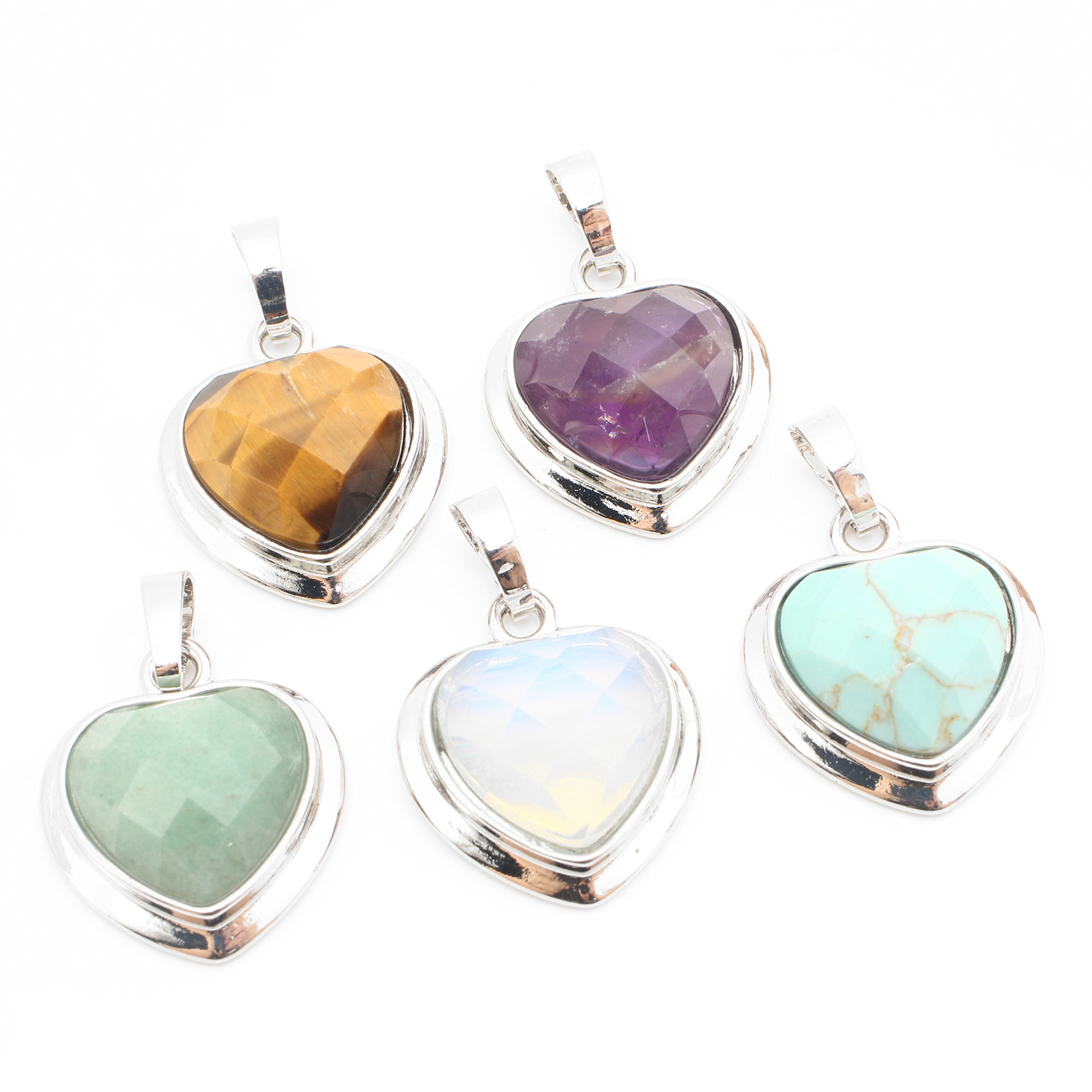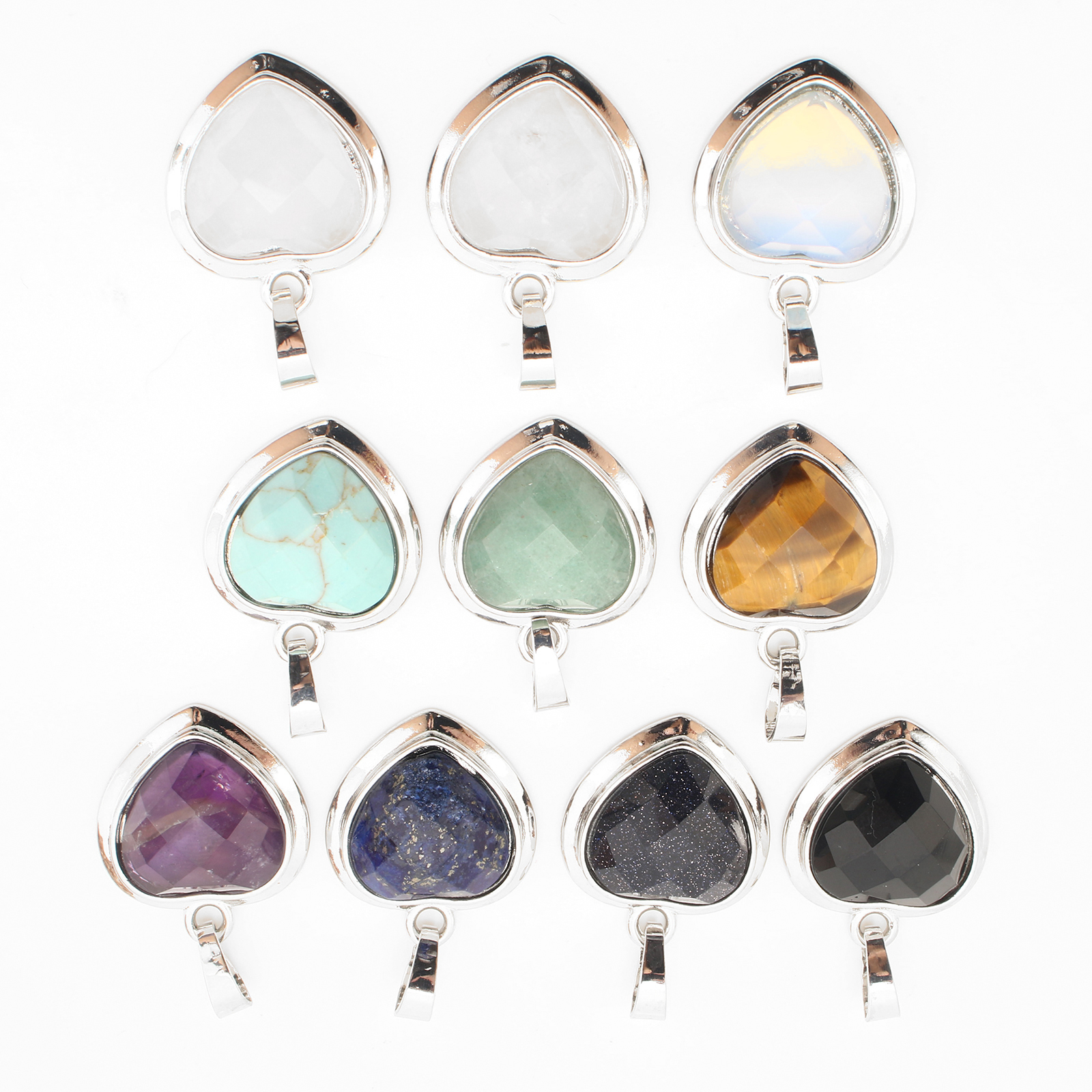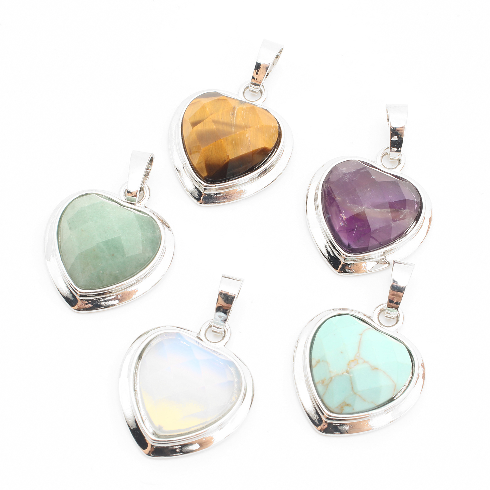 Edelstein Anhänger Schmuck, Messing, mit Edelstein, Herz, Platinfarbe platiniert, DIY & verschiedenen Materialien für die Wahl, 30x20x8mm, verkauft von PC