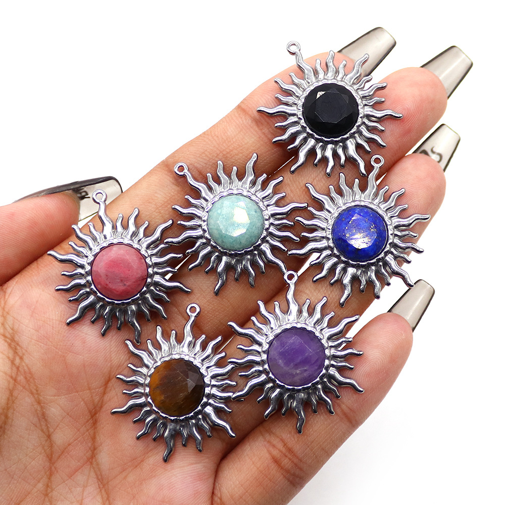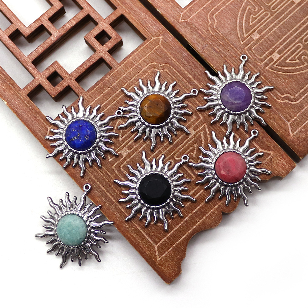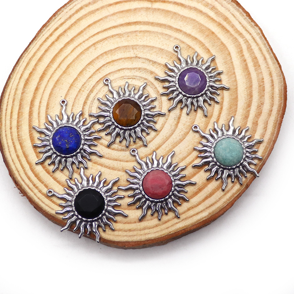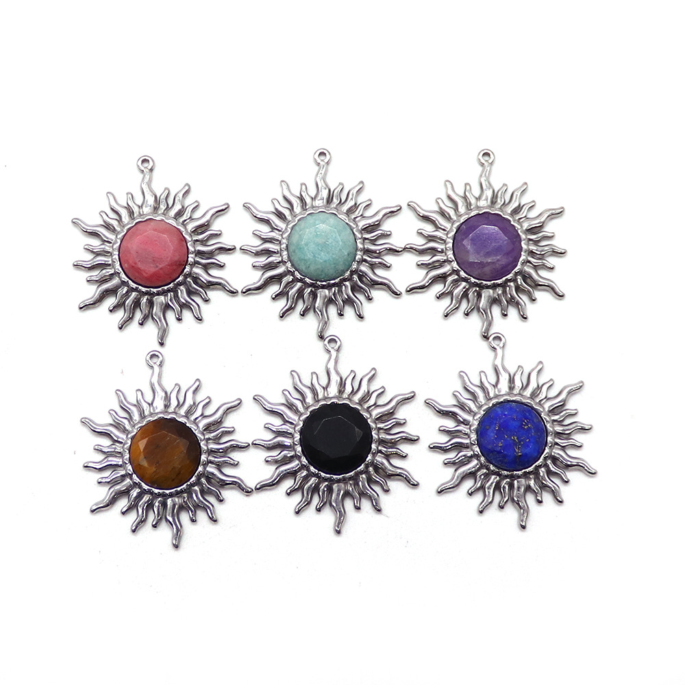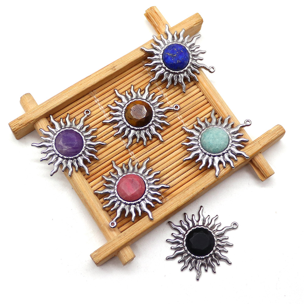Edelstein Anhänger Schmuck, Messing, mit Naturstein, Sonne, goldfarben plattiert, DIY, keine, frei von Nickel, Blei & Kadmium, 25x30mm, verkauft von PC