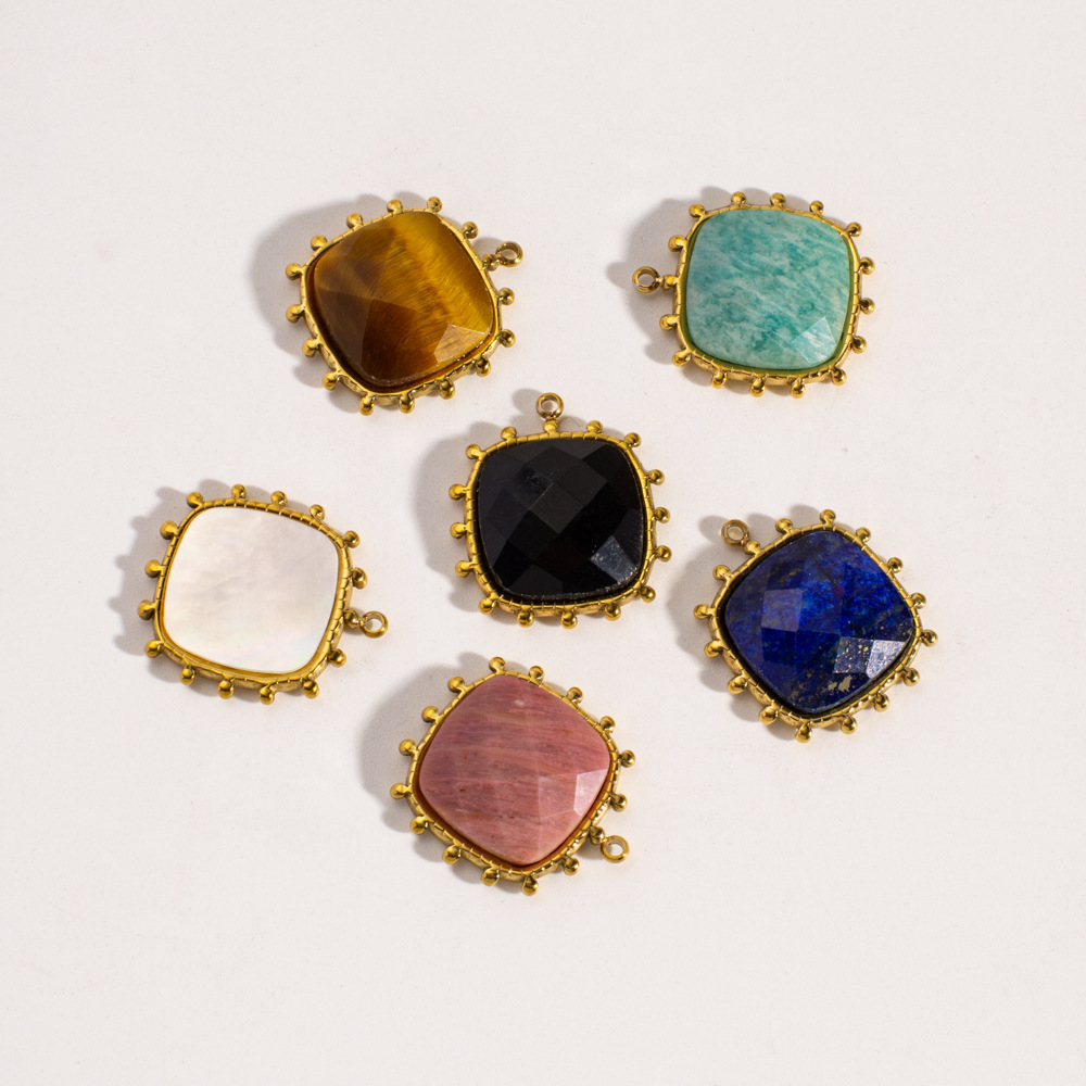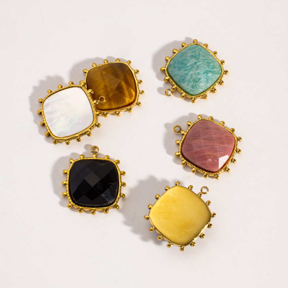Edelstein Anhänger Schmuck, 304 Edelstahl, mit Edelstein, Quadrat, goldfarben plattiert, DIY & verschiedenen Materialien für die Wahl, 19x21mm, 10PCs/Tasche, verkauft von Tasche