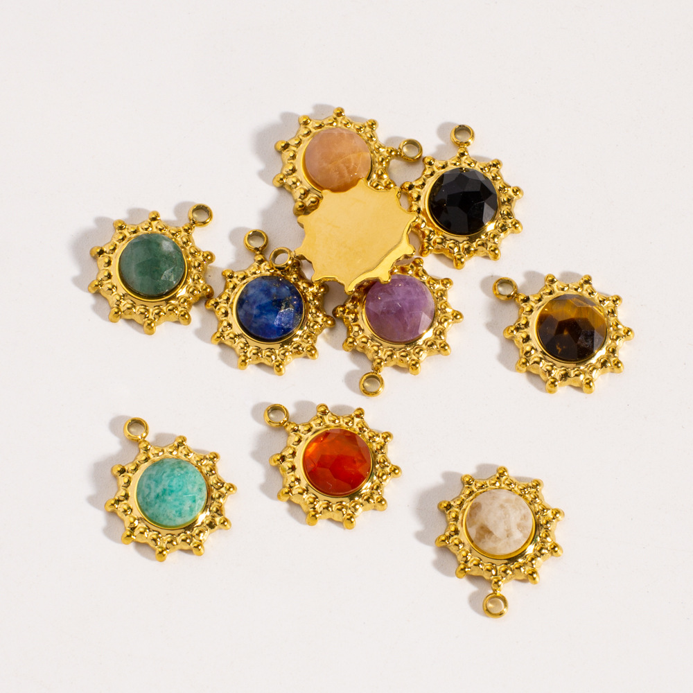 Edelstein Anhänger Schmuck, 304 Edelstahl, mit Edelstein, Sonne, goldfarben plattiert, DIY & verschiedenen Materialien für die Wahl, 12x15mm, 10PCs/Tasche, verkauft von Tasche