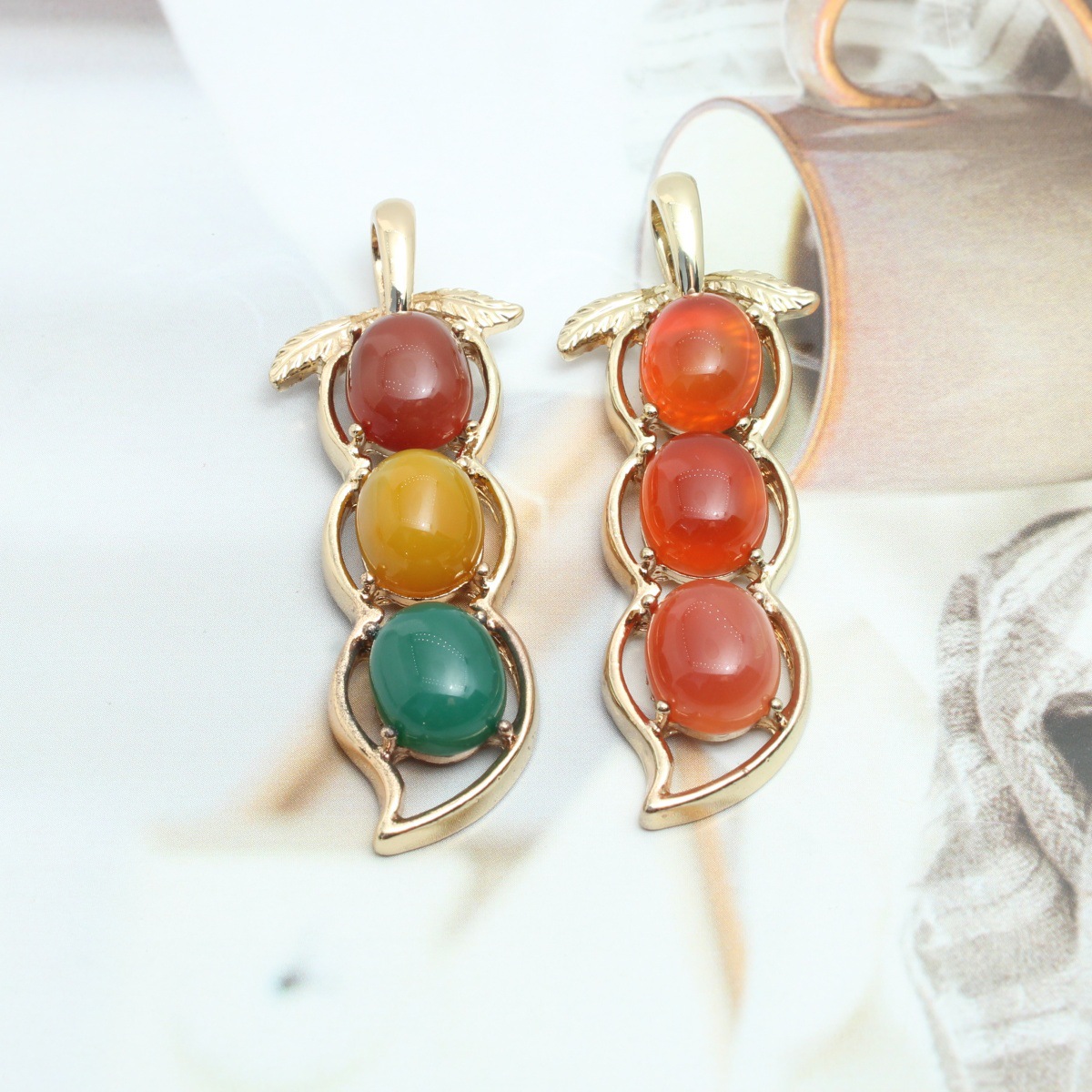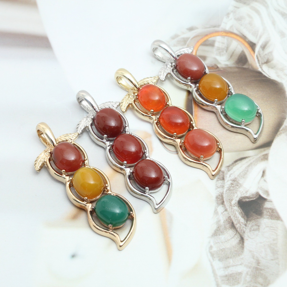 Edelstein Anhänger Schmuck, Zinklegierung, mit Edelstein, Erdnuss, plattiert, DIY & hohl, keine, 21x28mm, verkauft von PC