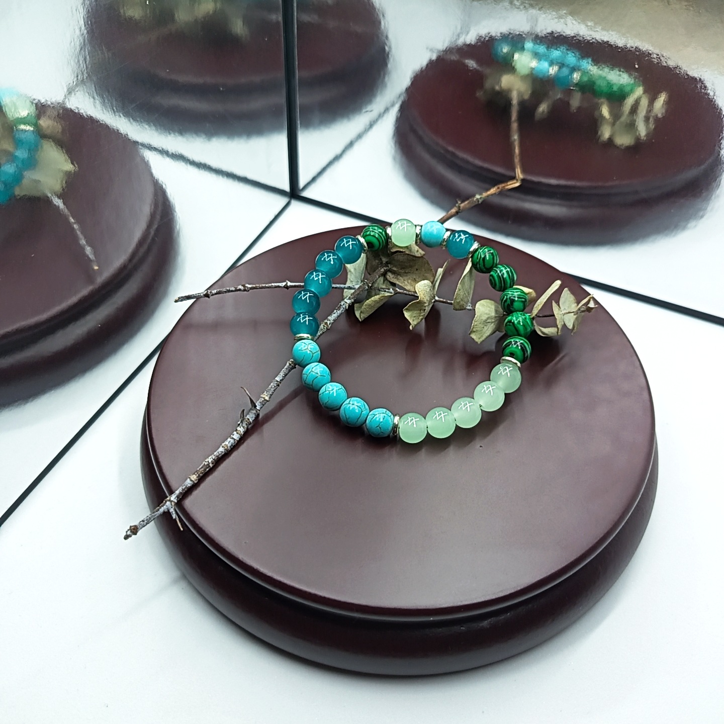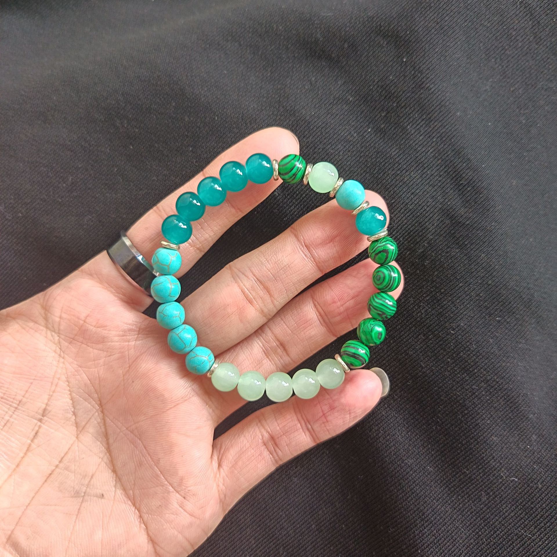 Edelstein Armbänder, Malachit, mit Türkis, rund, unisex, Länge 15 cm, verkauft von PC