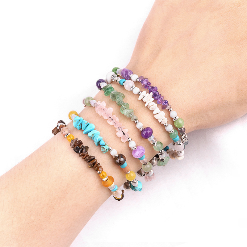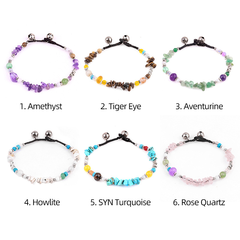 1:Amethyst2:Tiger eye stone3:Green aventurine4:Blue turquoise5:Pink crystal6:White turquoise