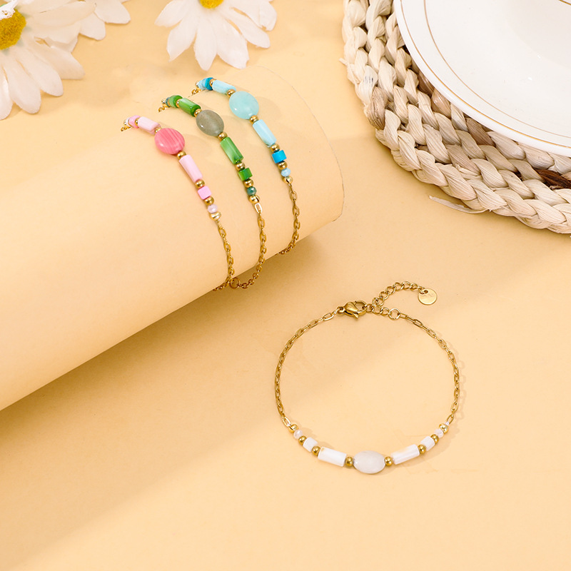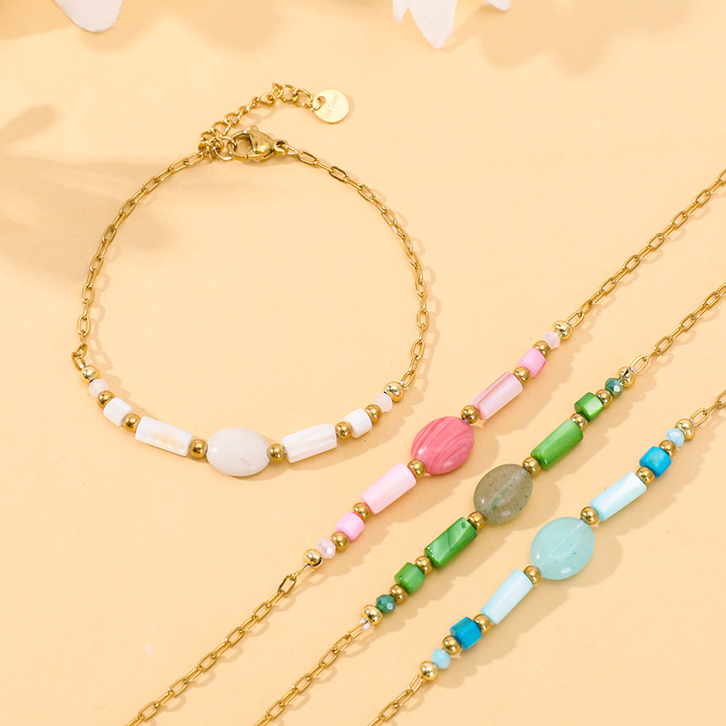 Edelstein Armbänder, 304 Edelstahl, mit Naturstein & Pearl Shell & Kristall, goldfarben plattiert, Modeschmuck, keine, verkauft von PC