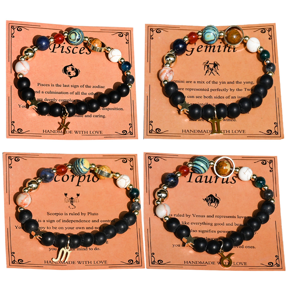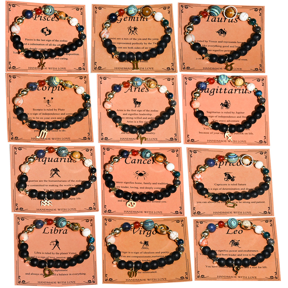 Edelstein Armbänder, mit Zinklegierung, 12 Zeichen des Sternzeichens, goldfarben plattiert, Modeschmuck, keine, verkauft von PC