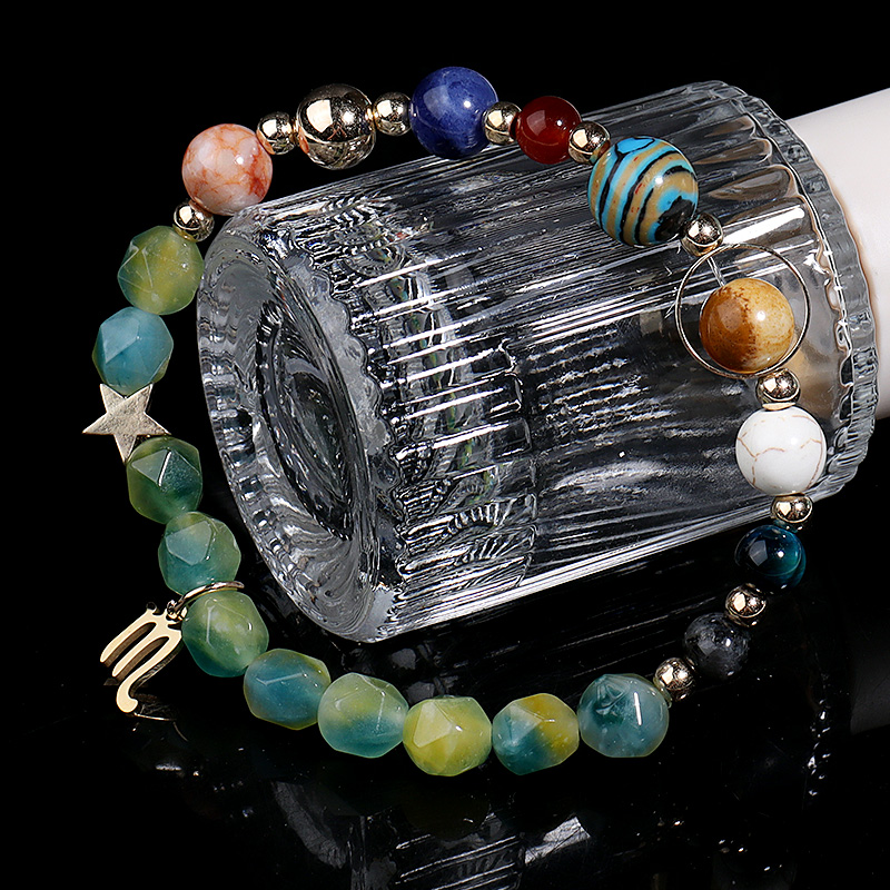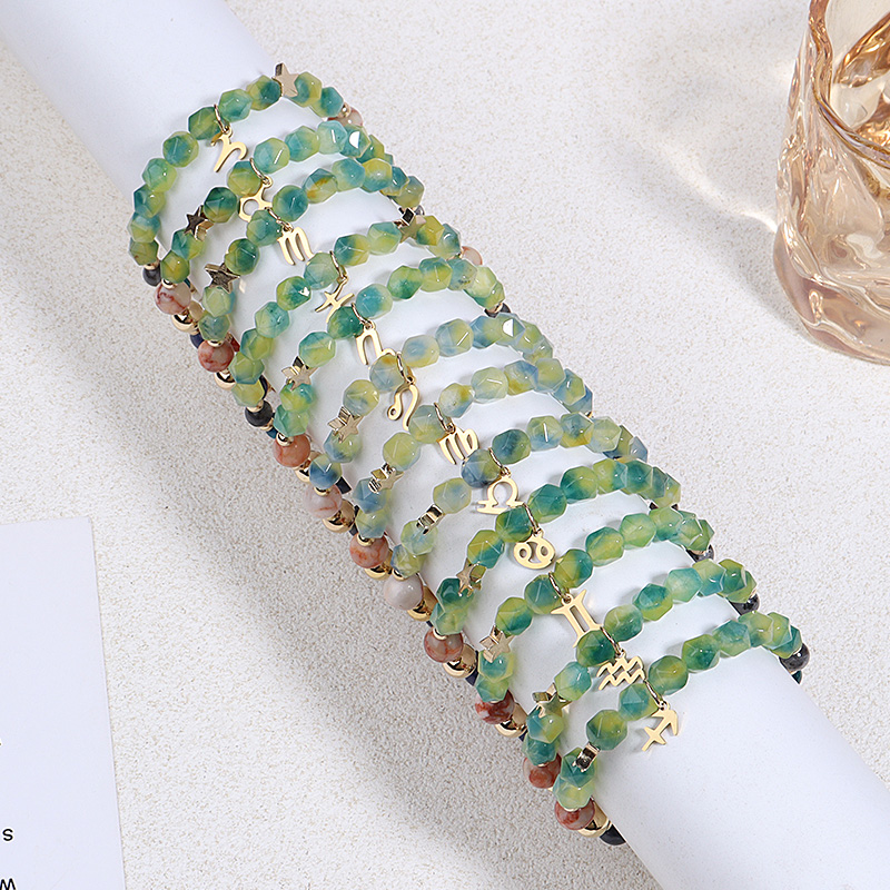 Edelstein Armbänder, 304 Edelstahl, mit Naturstein, 12 Zeichen des Sternzeichens, plattiert, Modeschmuck, keine, 6-8mm, verkauft per 19 cm Strang