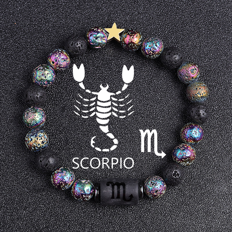 Edelstein Armbänder, Messing, mit Obsidian & Lava, 12 Zeichen des Sternzeichens, plattiert, Modeschmuck, keine, 10x13mm, verkauft per 19 cm Strang