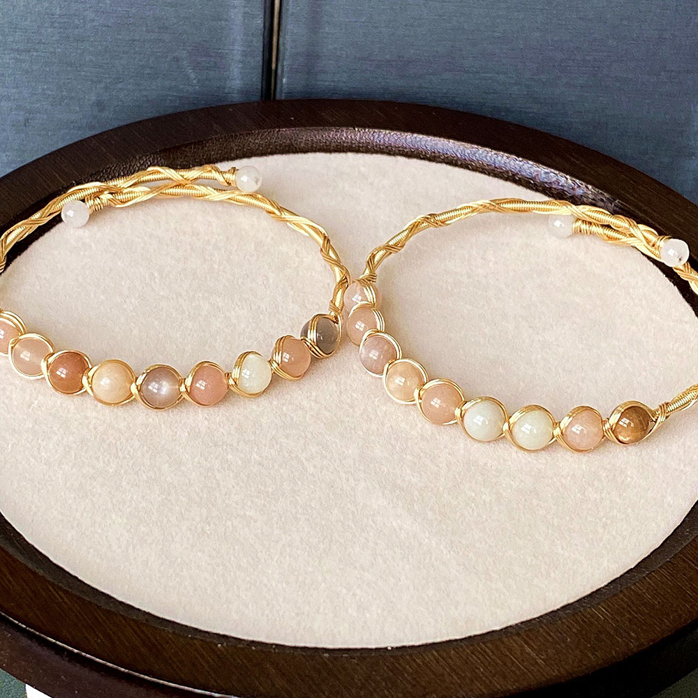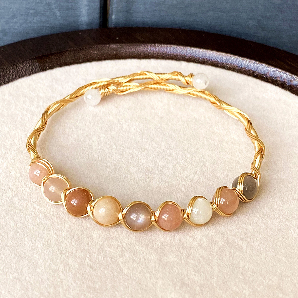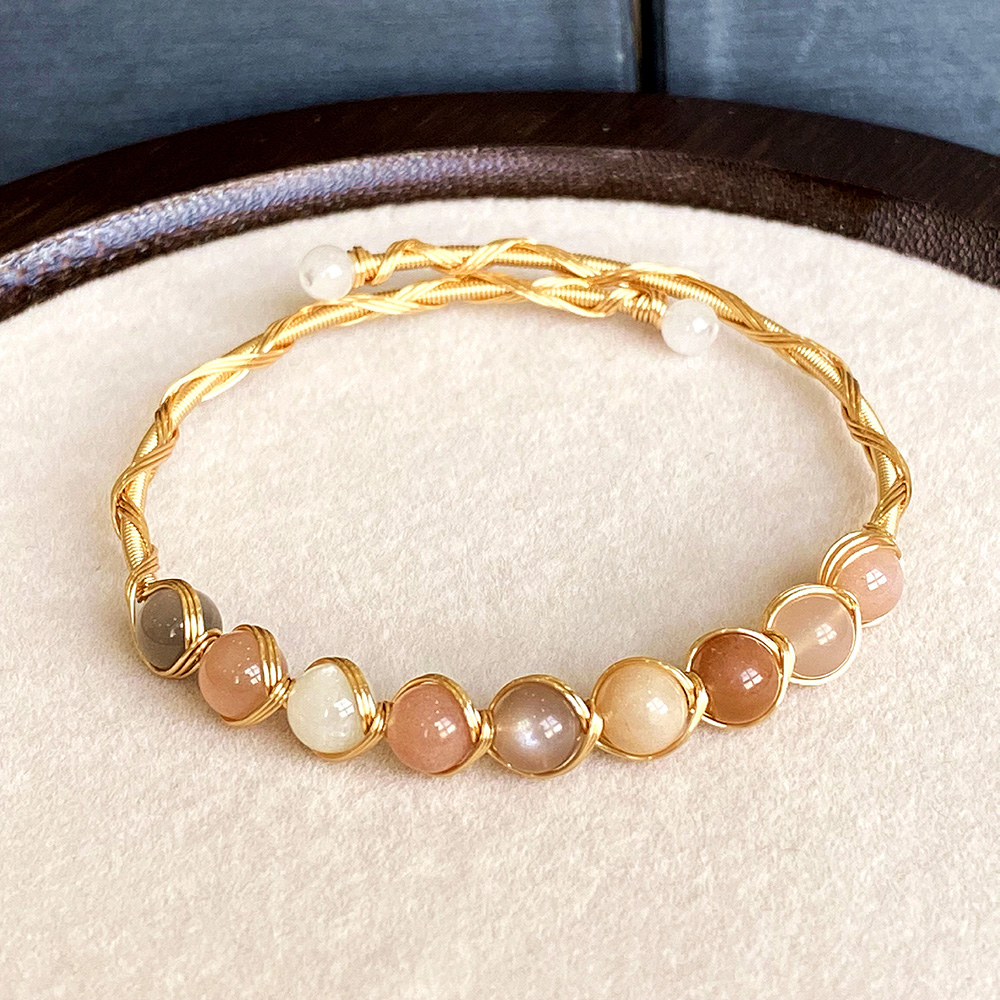 Edelstein Armbänder, Messing, mit Mondstein, 14K goldgefüllt, Modeschmuck & für Frau, Inner diameter :55mm, verkauft von PC